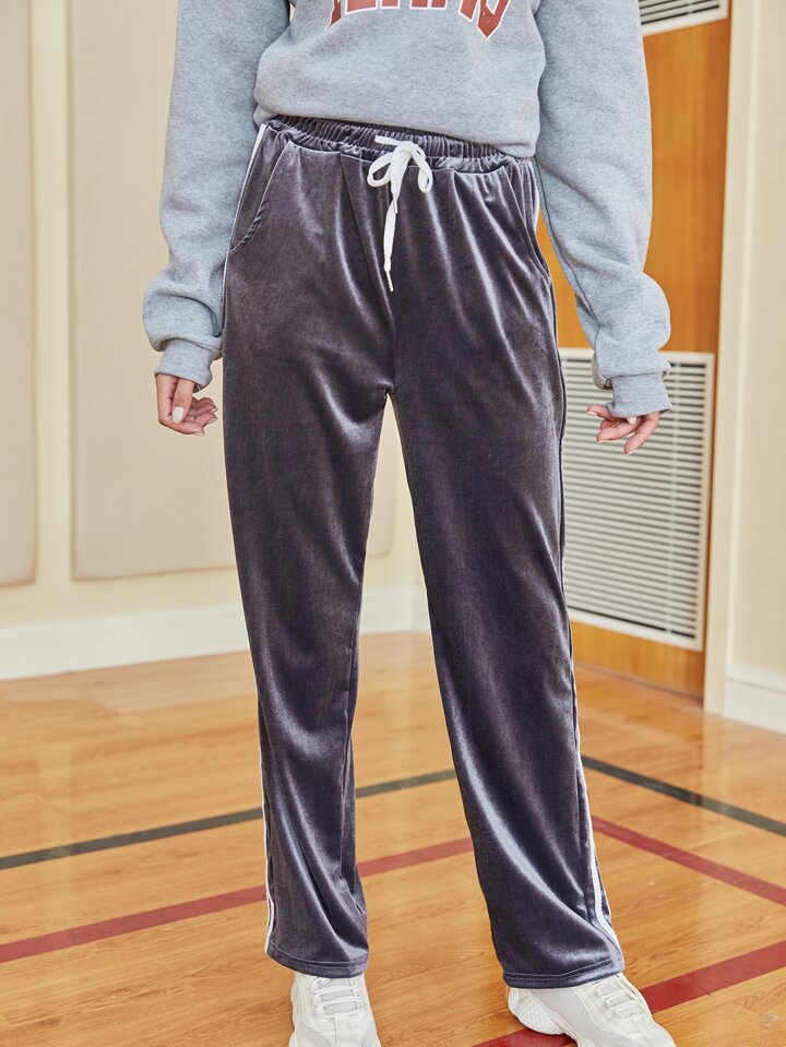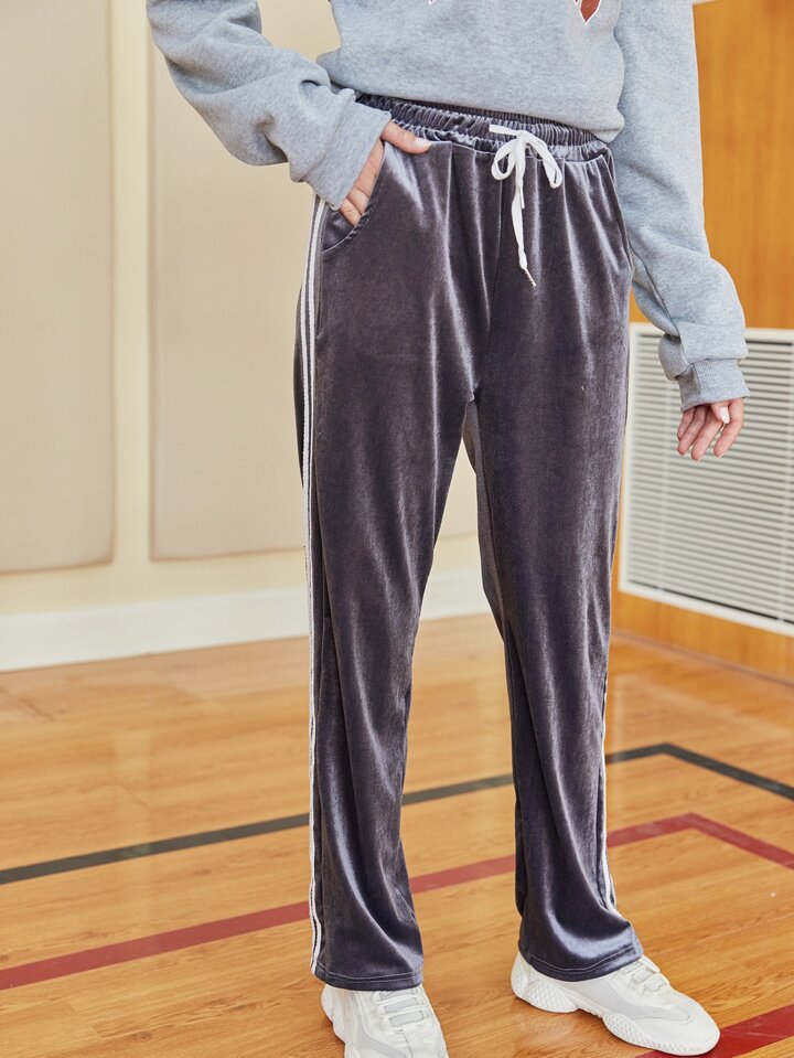 Striped Side Drawstring Velvet Pants