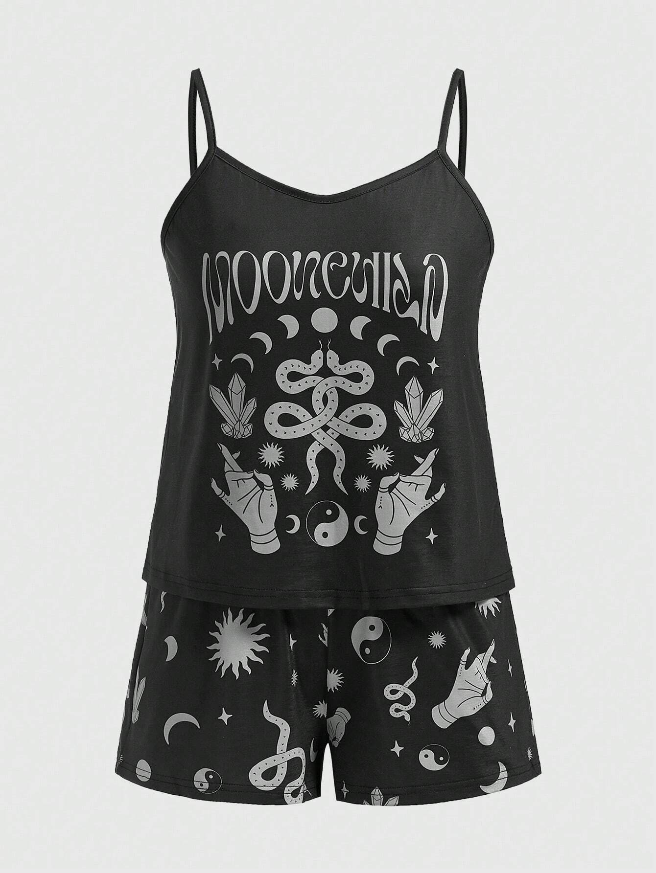 Studio Chunk Sun Moon And Stars Print Cami And Shorts Pajama Set