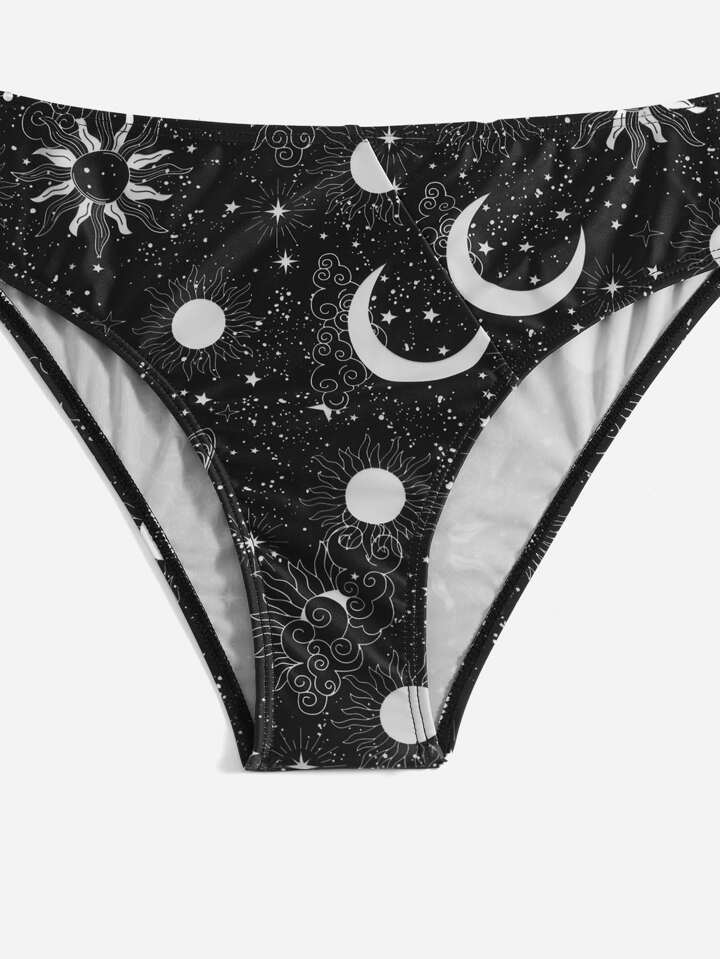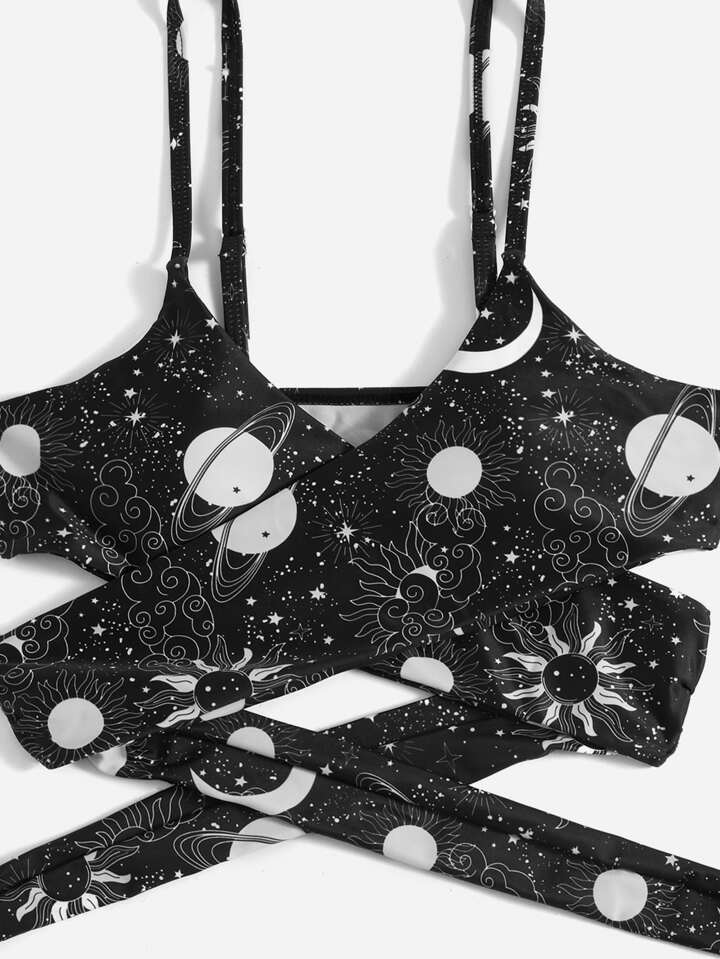 Summer Beach Galaxy Print Bikini Set Criss Cross Wireless Bra Top & Cheeky Bikini Bottom 2 Pieces Bikini