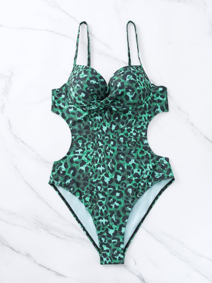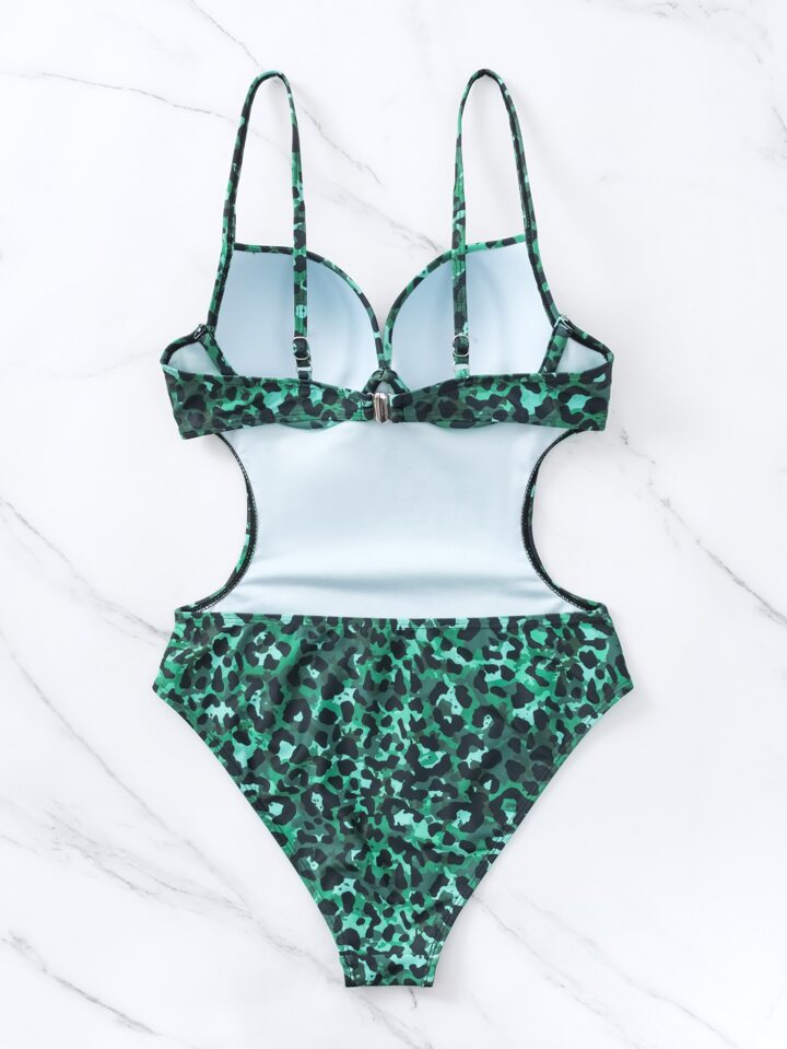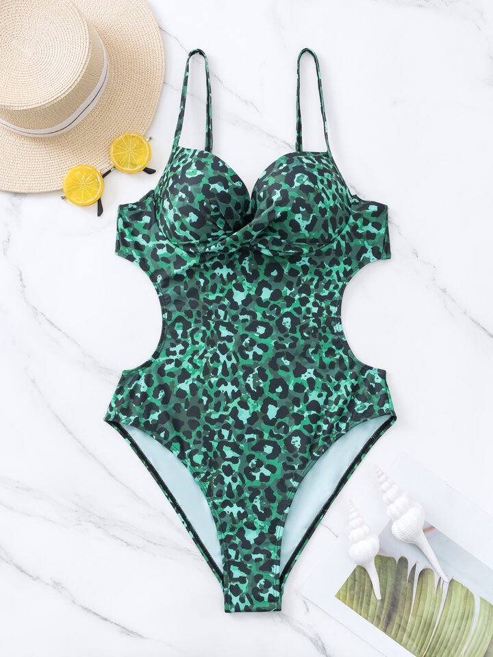 Summer Beach Leopard Print Criss Cross Front Push Up One Piece Swimsuit