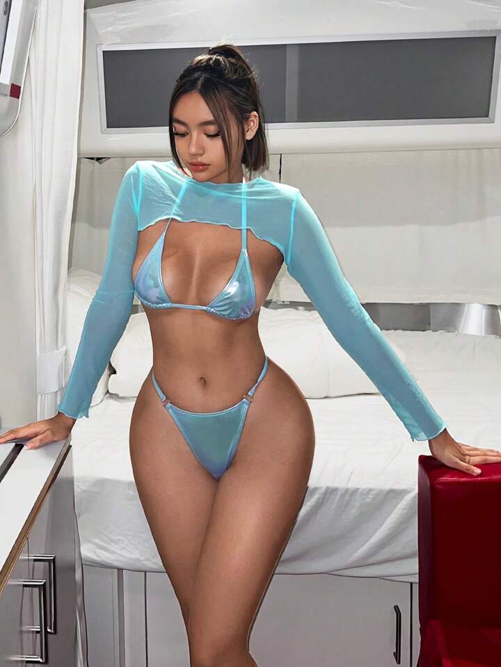 Summer Beach Plain Halter Bikini Set With Cover Up