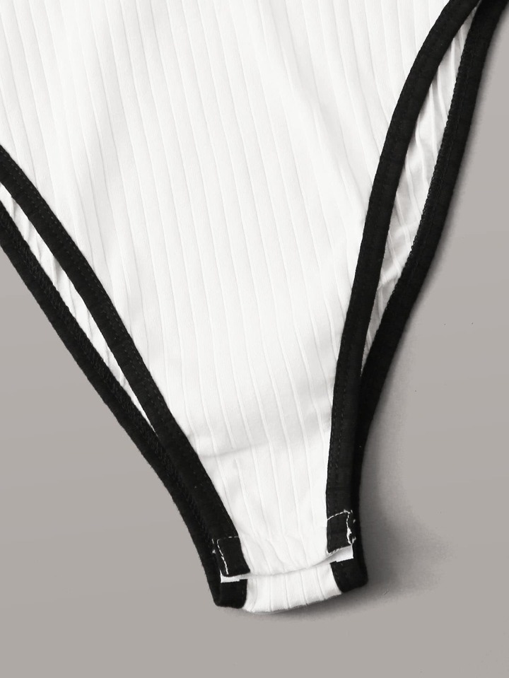 Summer Letter Graphic Color Block Knitted Football Bodysuit
