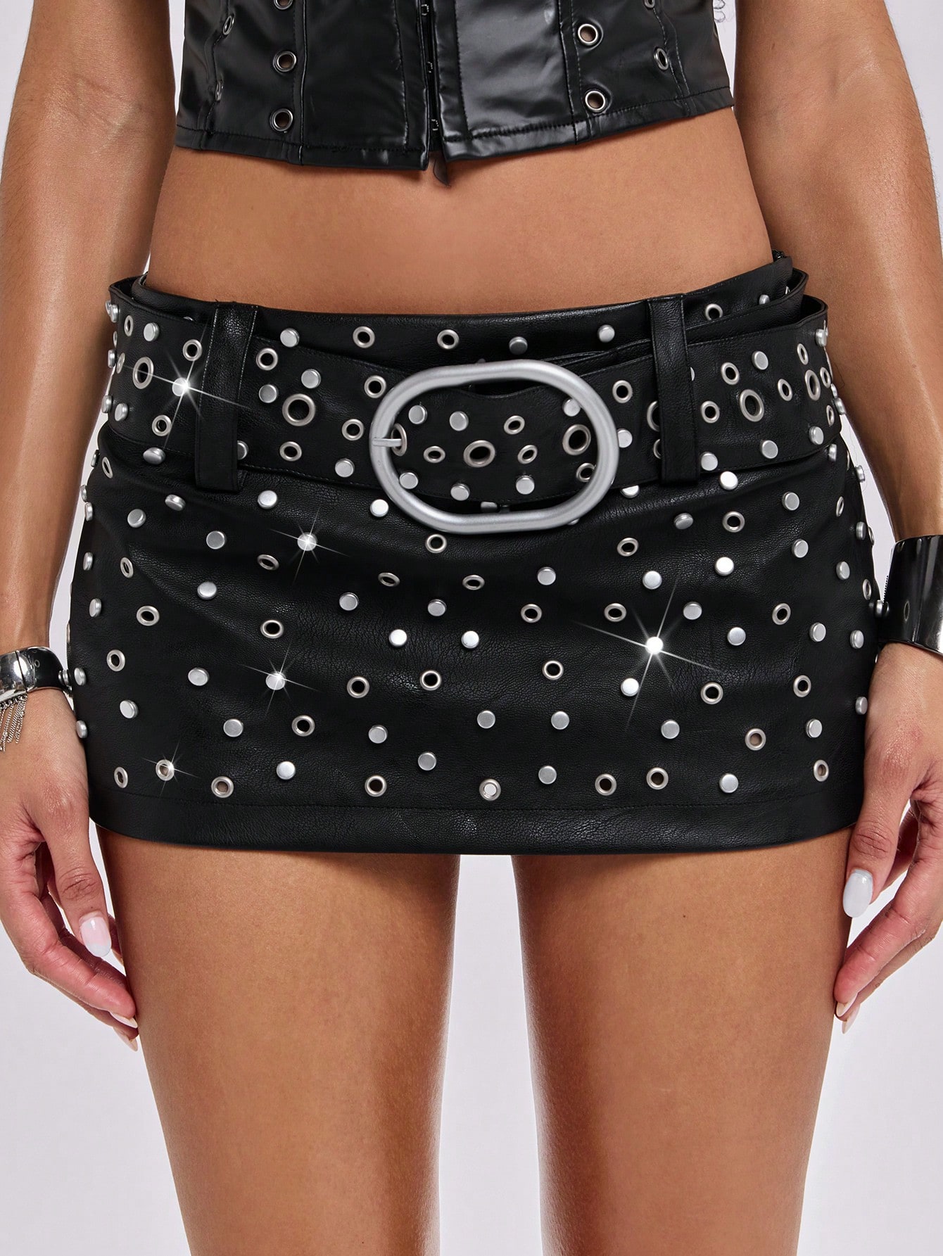 Summer Y2K Baddie Music Festival Outfit Studded Mini Skirt
