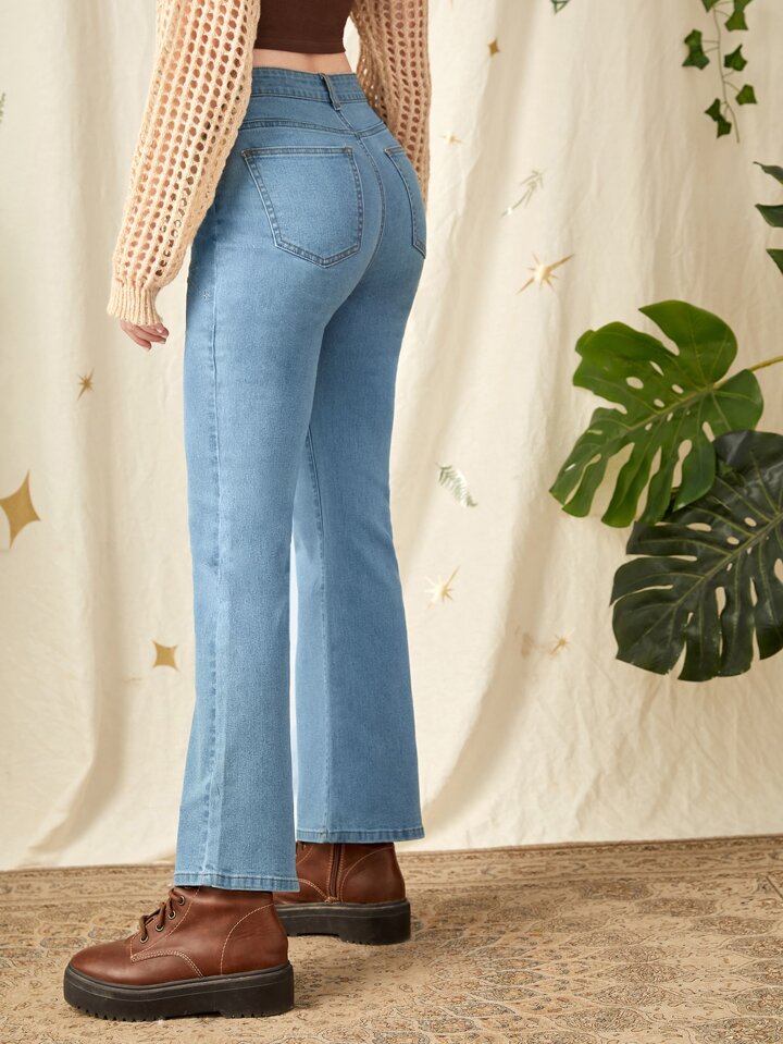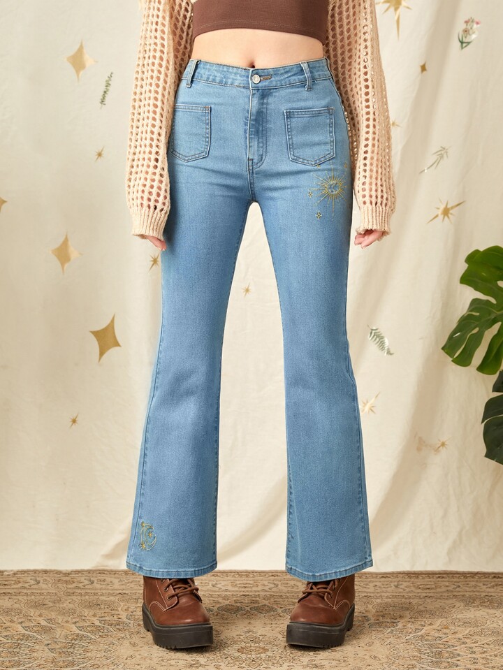 Sun & Moon Embroidery Flare Leg Jeans