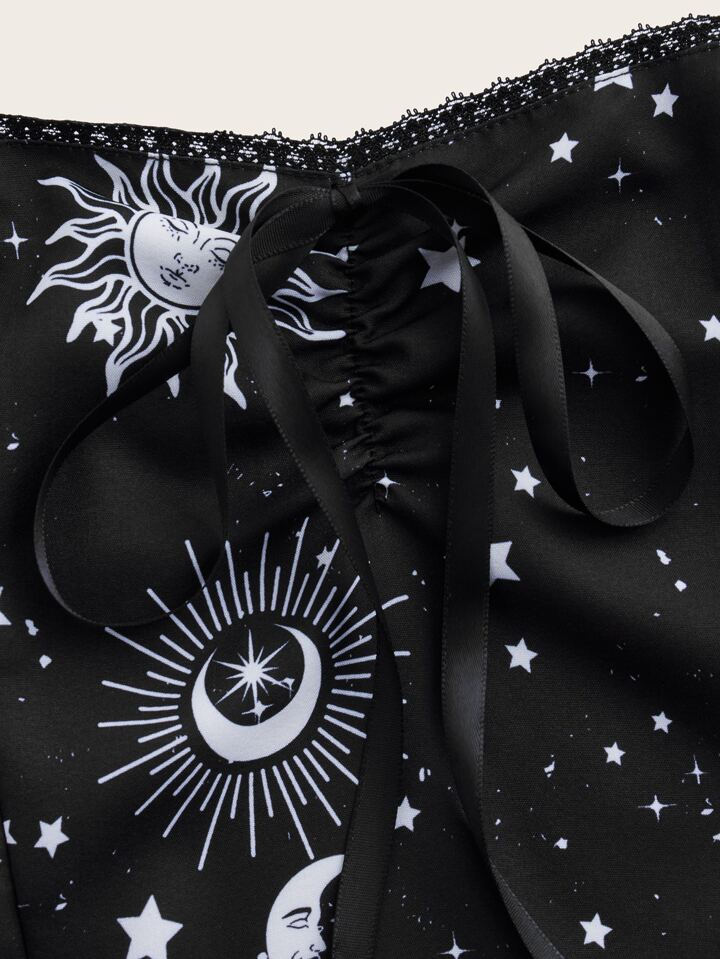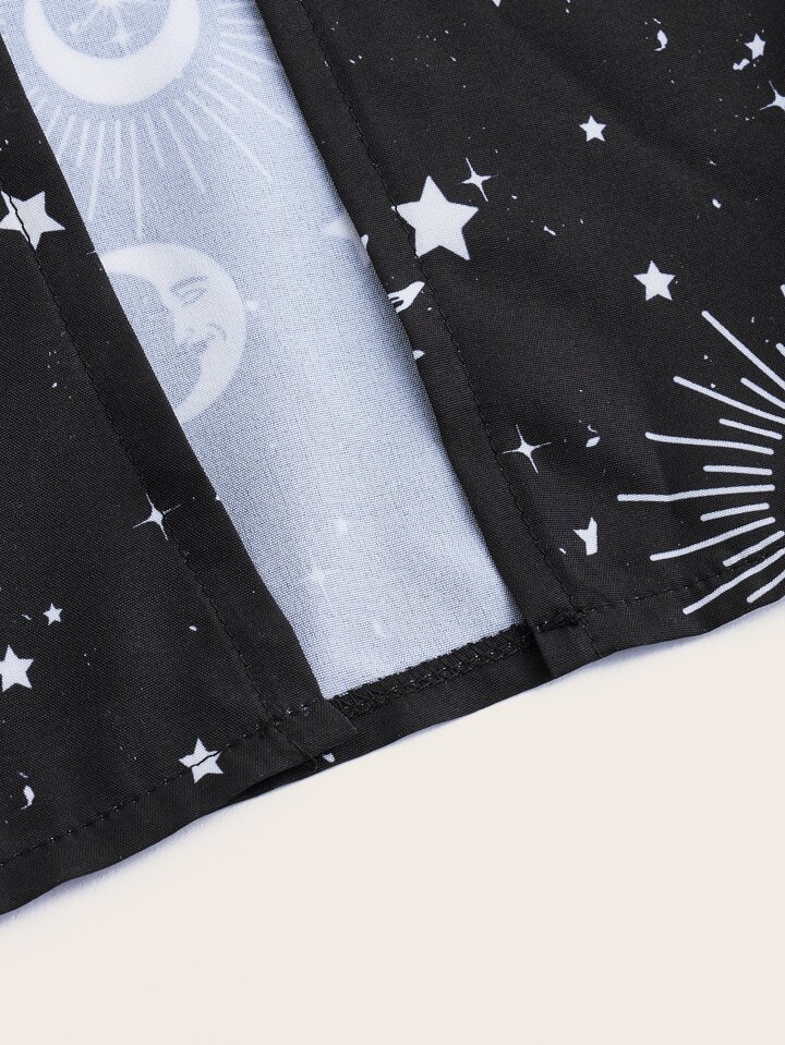 Sun & Moon Graphic Cold Shoulder Split Thigh Dress