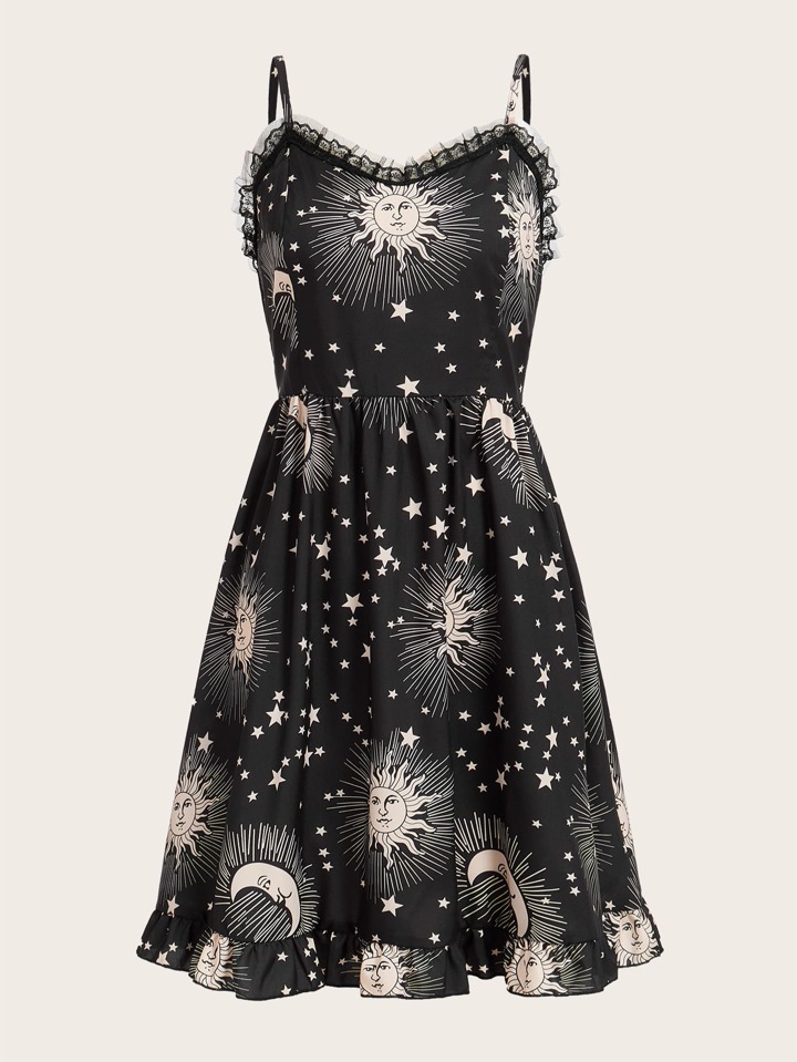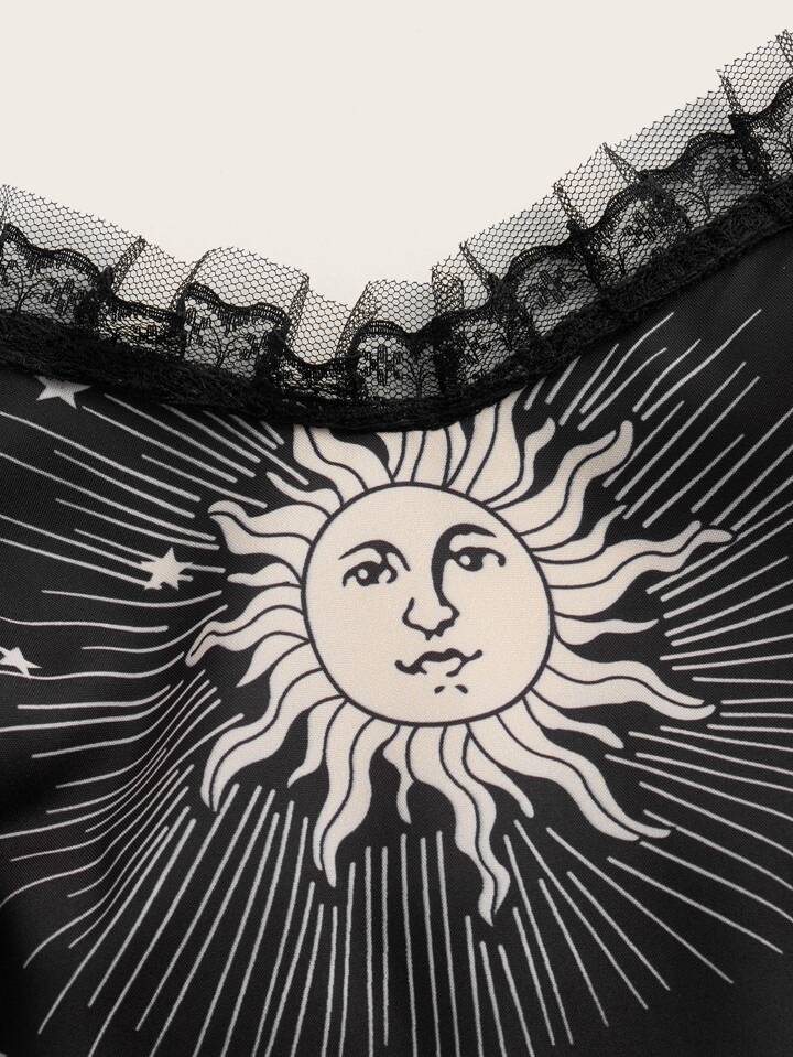 Sun & Moon Graphic Contrast Lace Cami Dress