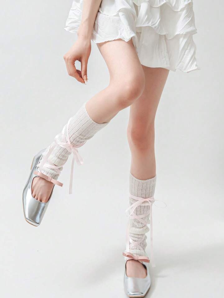 Sweetness 1pair Women Ribbed Lace Up Leg Warmers