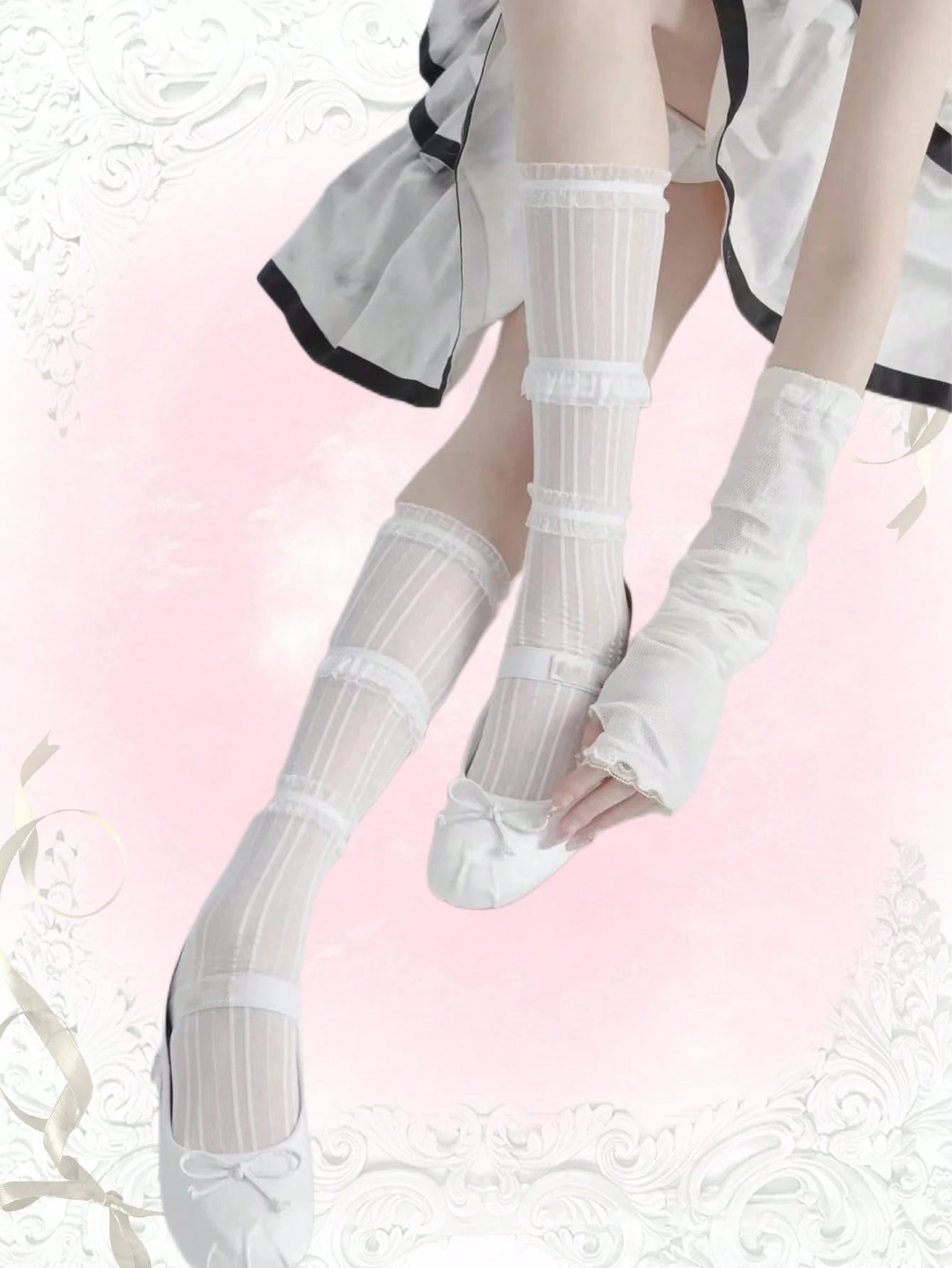 Sweetness 1pair Women Solid Frill Fashion Over The Calf Socks