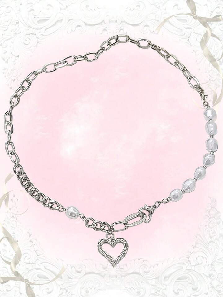 Sweetness 1pc Fashion Zinc Alloy Faux Pearl Decor Heart Charm Necklace For Women For Daily Decoration