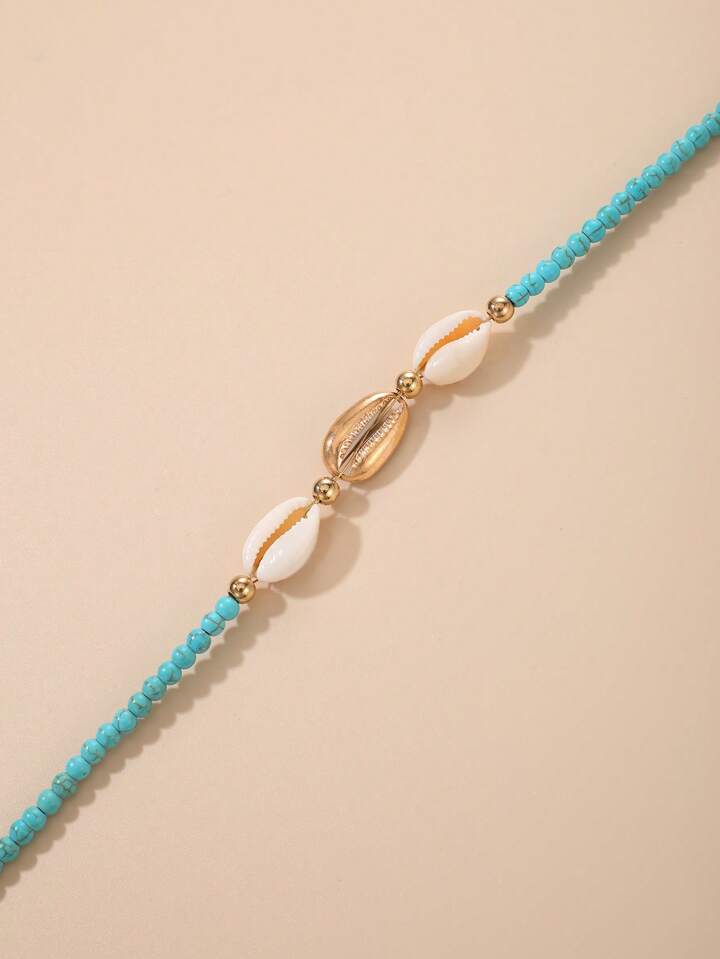 Sweetness 1pc Fashion Zinc Alloy Shell Decor Beaded Anklet For Women For Daily Decoration