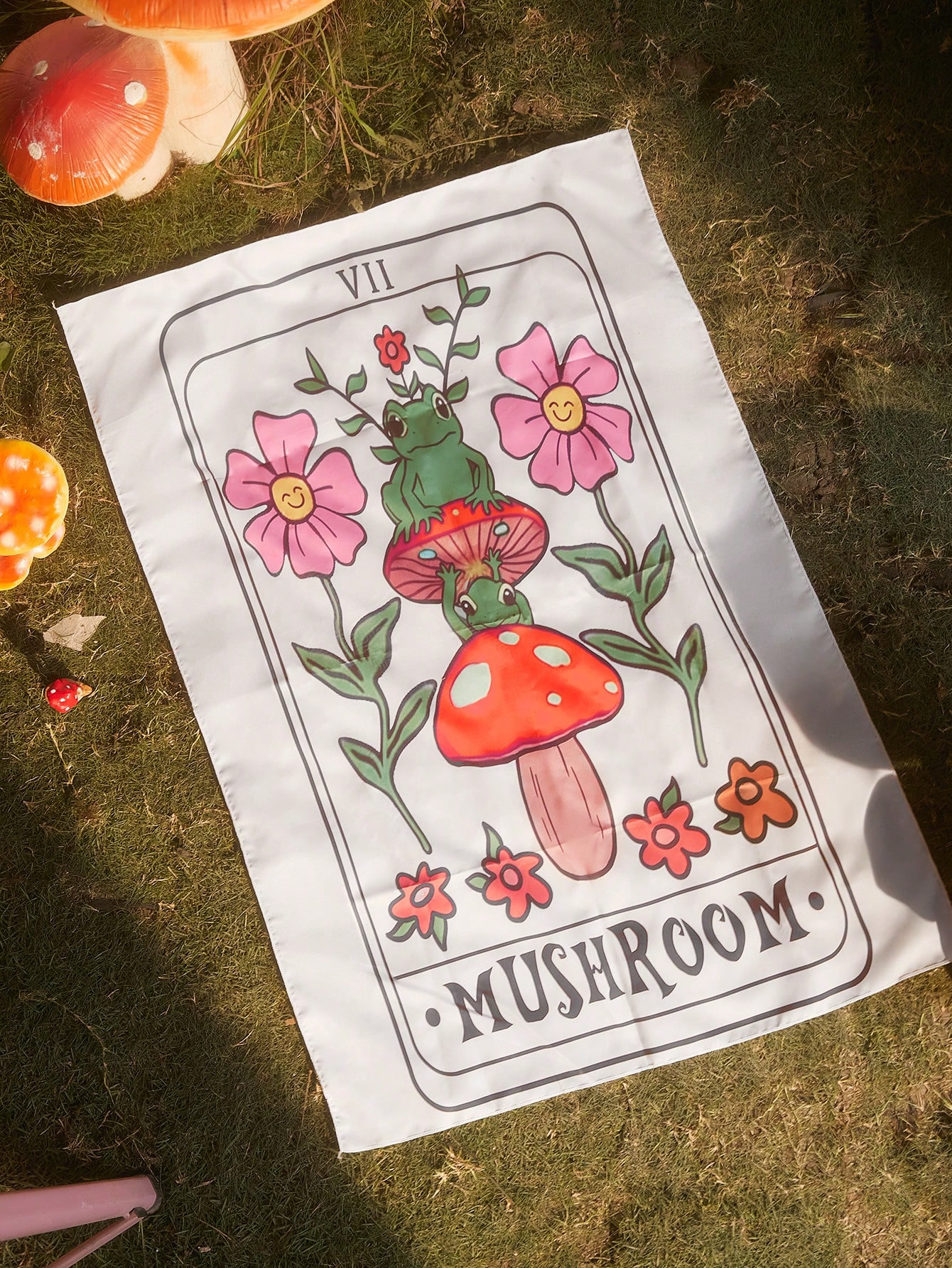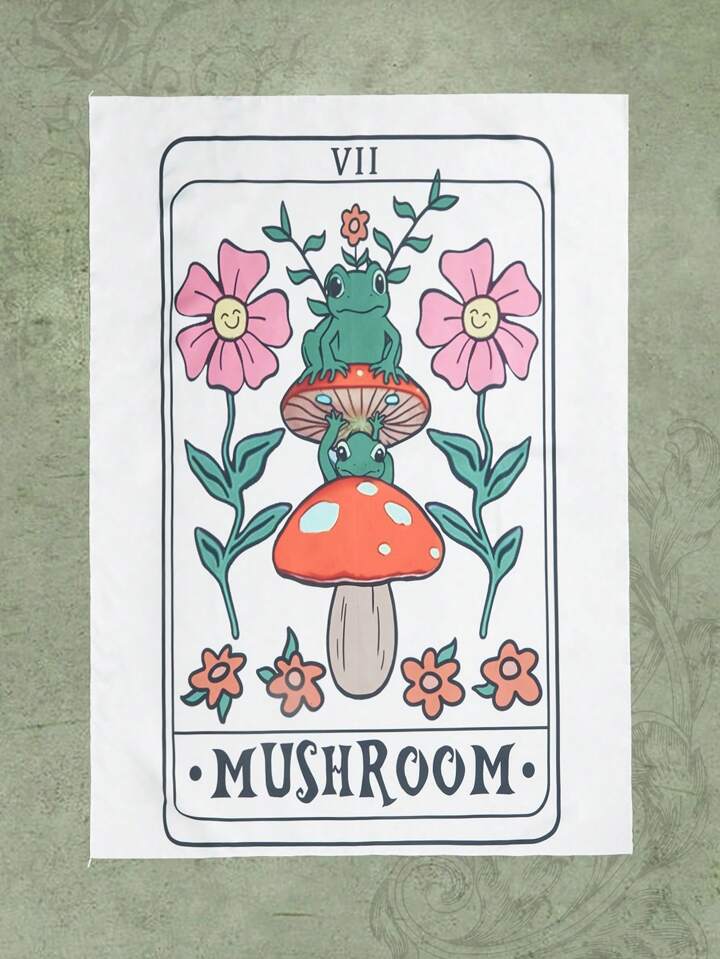Sweetness 1pc Frog & Mushroom Graphic Tapestry,Cute Washable Tapestry Poster Wall Hanging For Bedroom Aesthetic