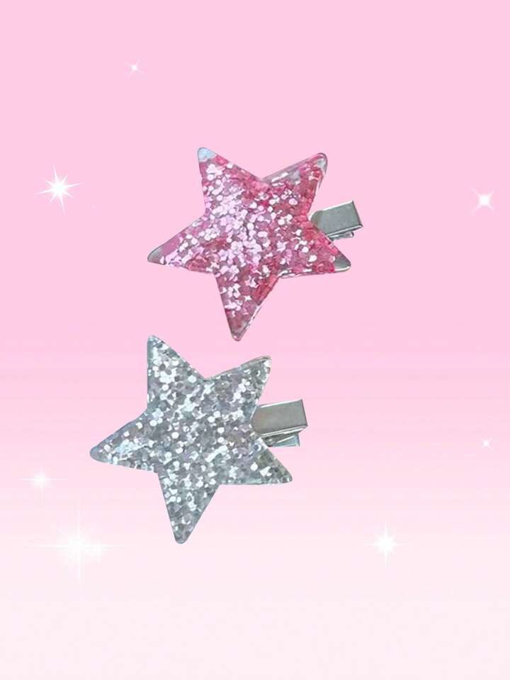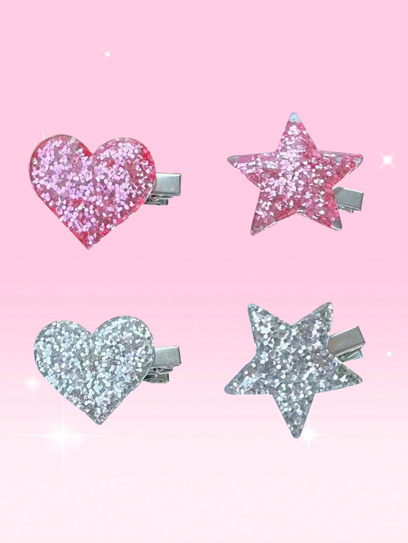 Sweetness 2pcs Women Random Heart & Star Decor Fashion Alligator Hair Clip, For Decoration