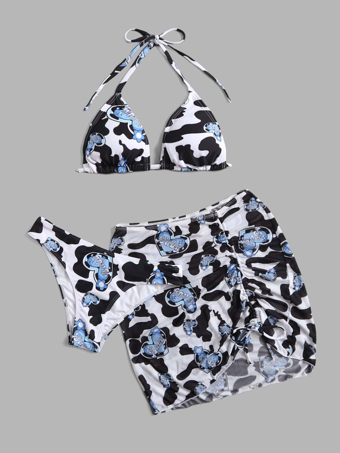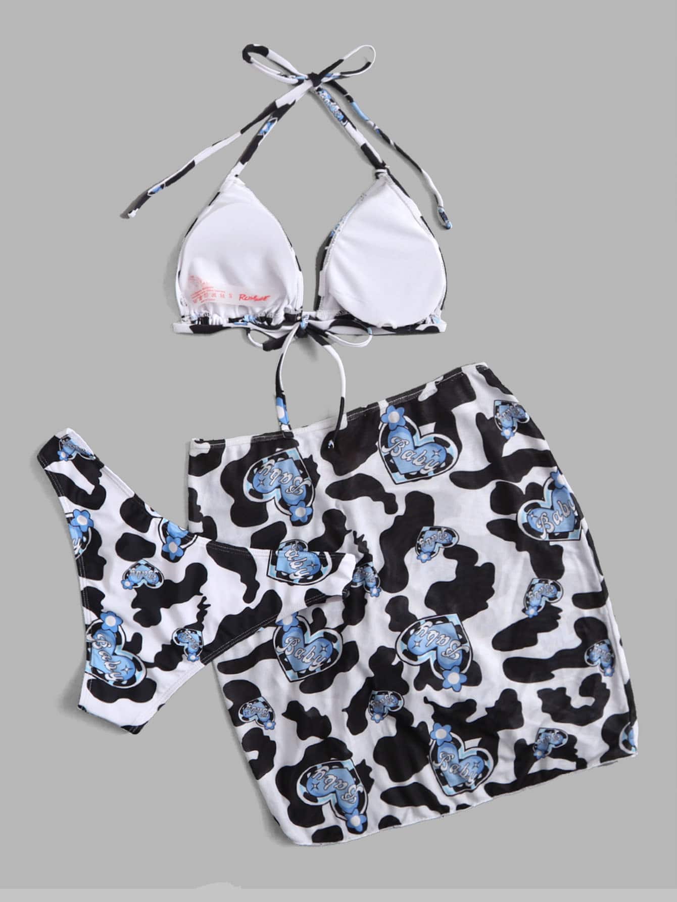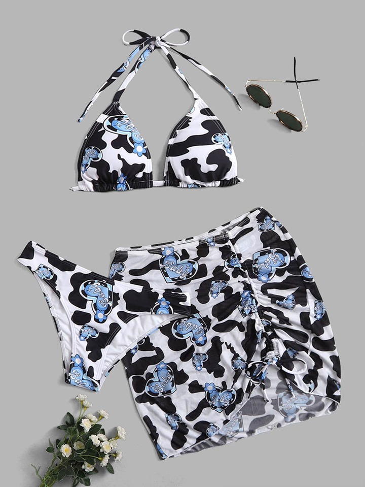 Sweetness 3packs Cow Print Triangle Bikini & Beach Skirt