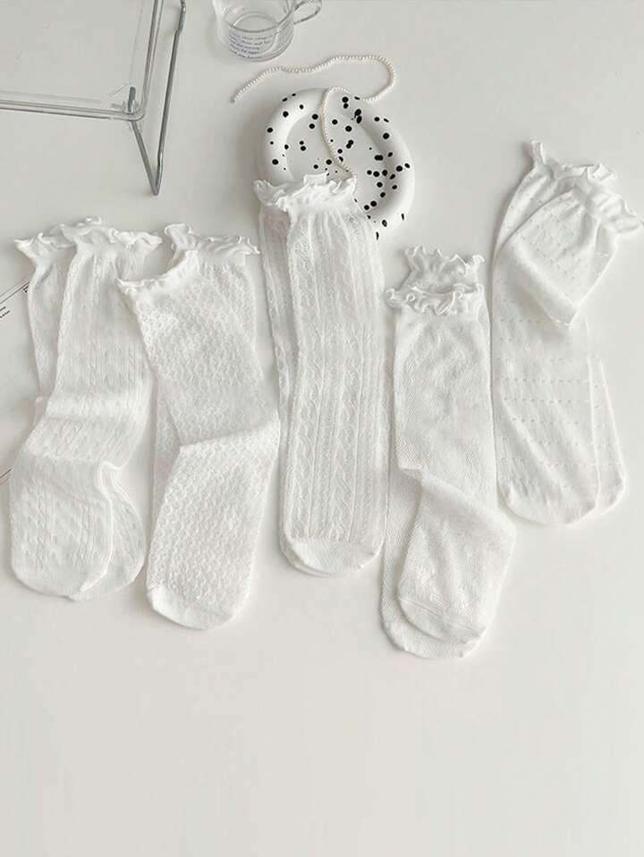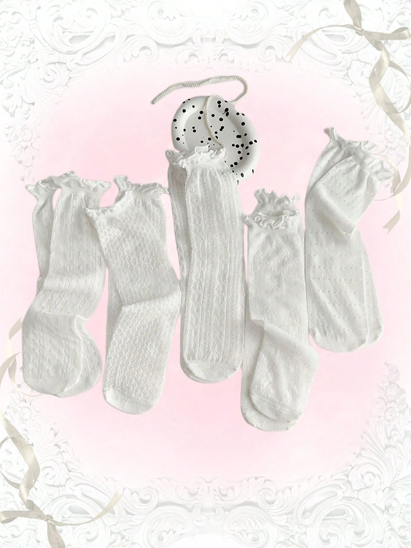 Sweetness 5pairs Women Lettuce Trim Cute Crew Socks