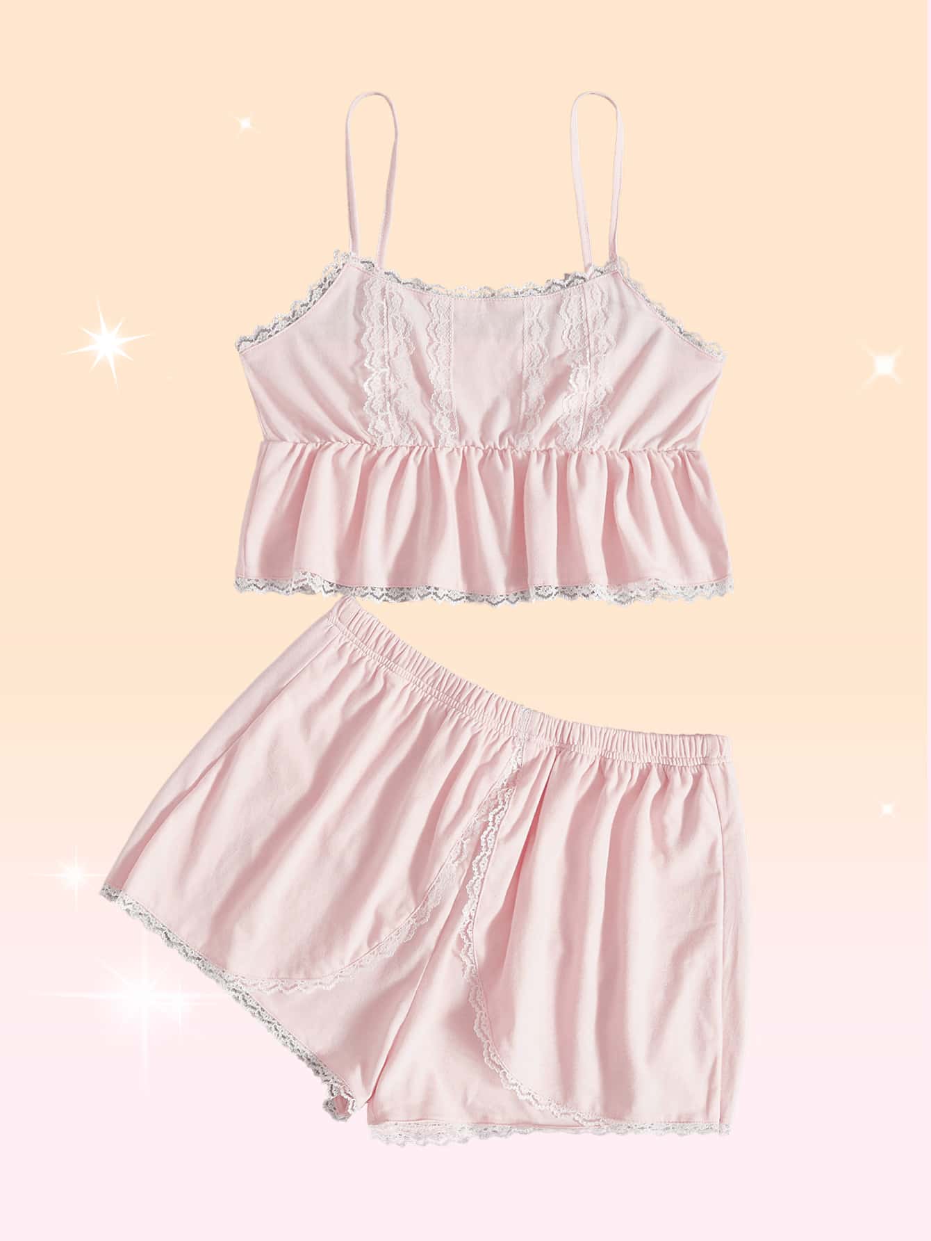 Sweetness Contrast Lace Ruffle Hem Pajama Set