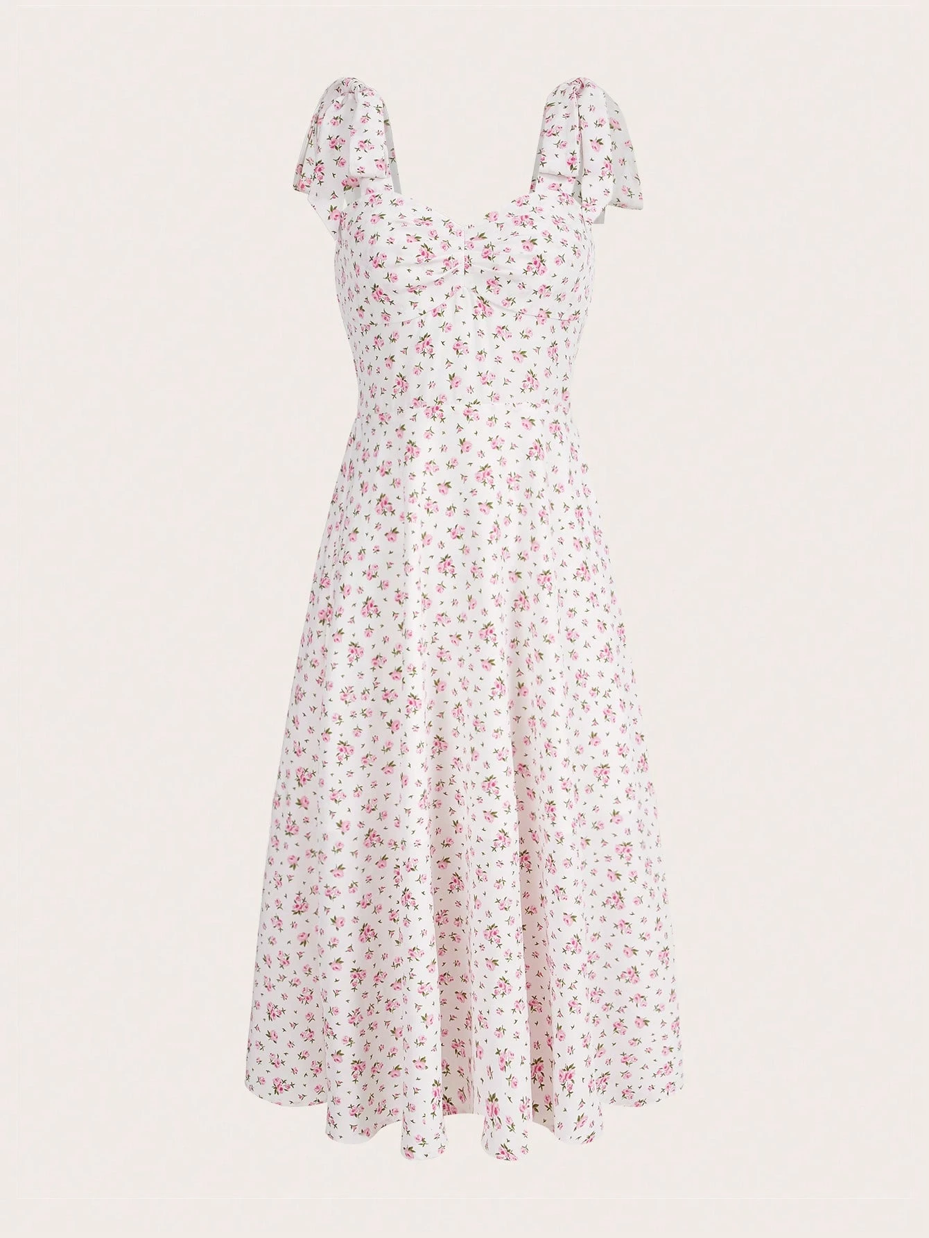 Sweetness Ditsy Floral Print Ruched Tie Shoulder Cami Dress