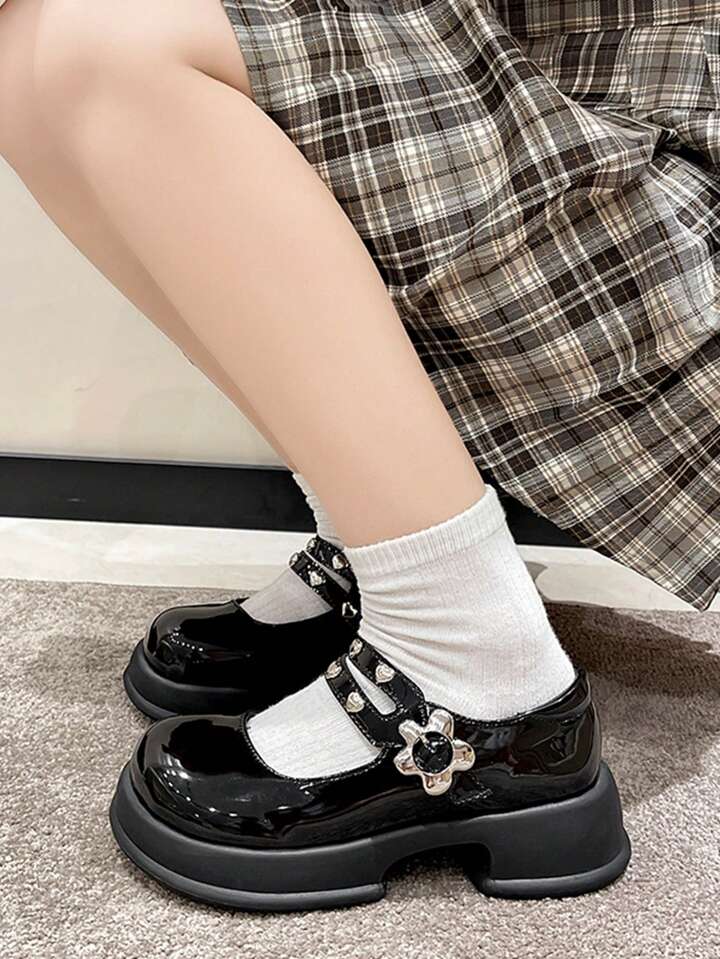 Sweetness Elegant Mary Jane Shoes Women Flower Decor Platform Wedges Shoes