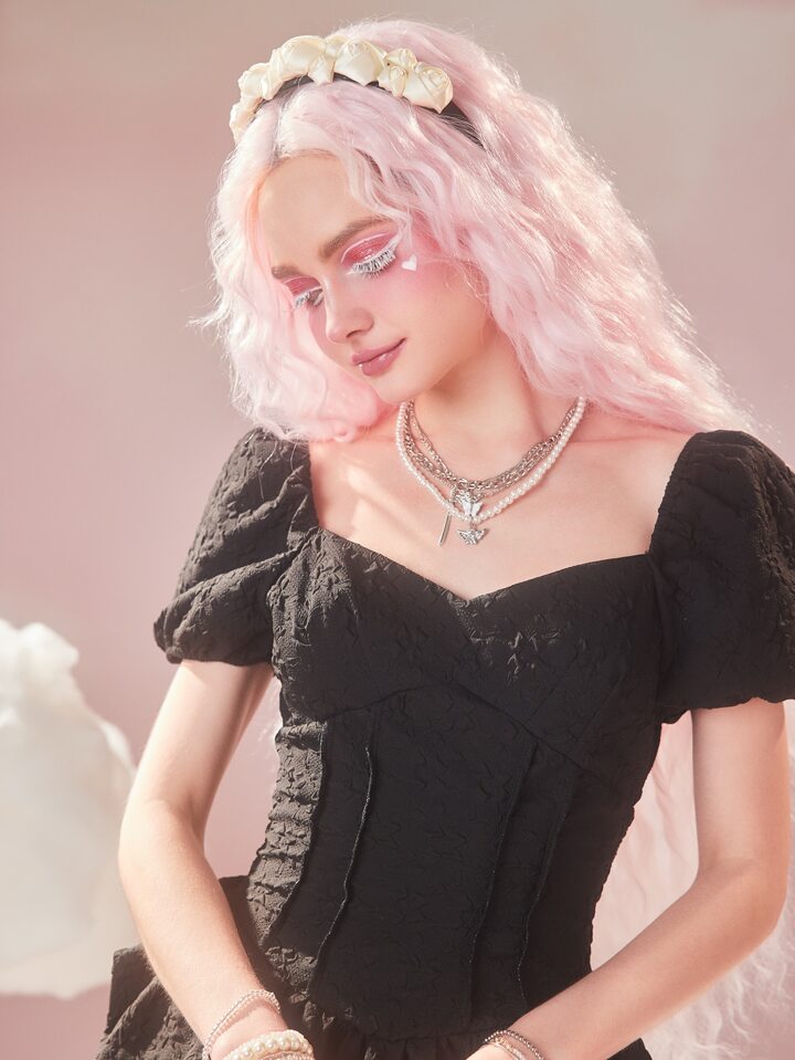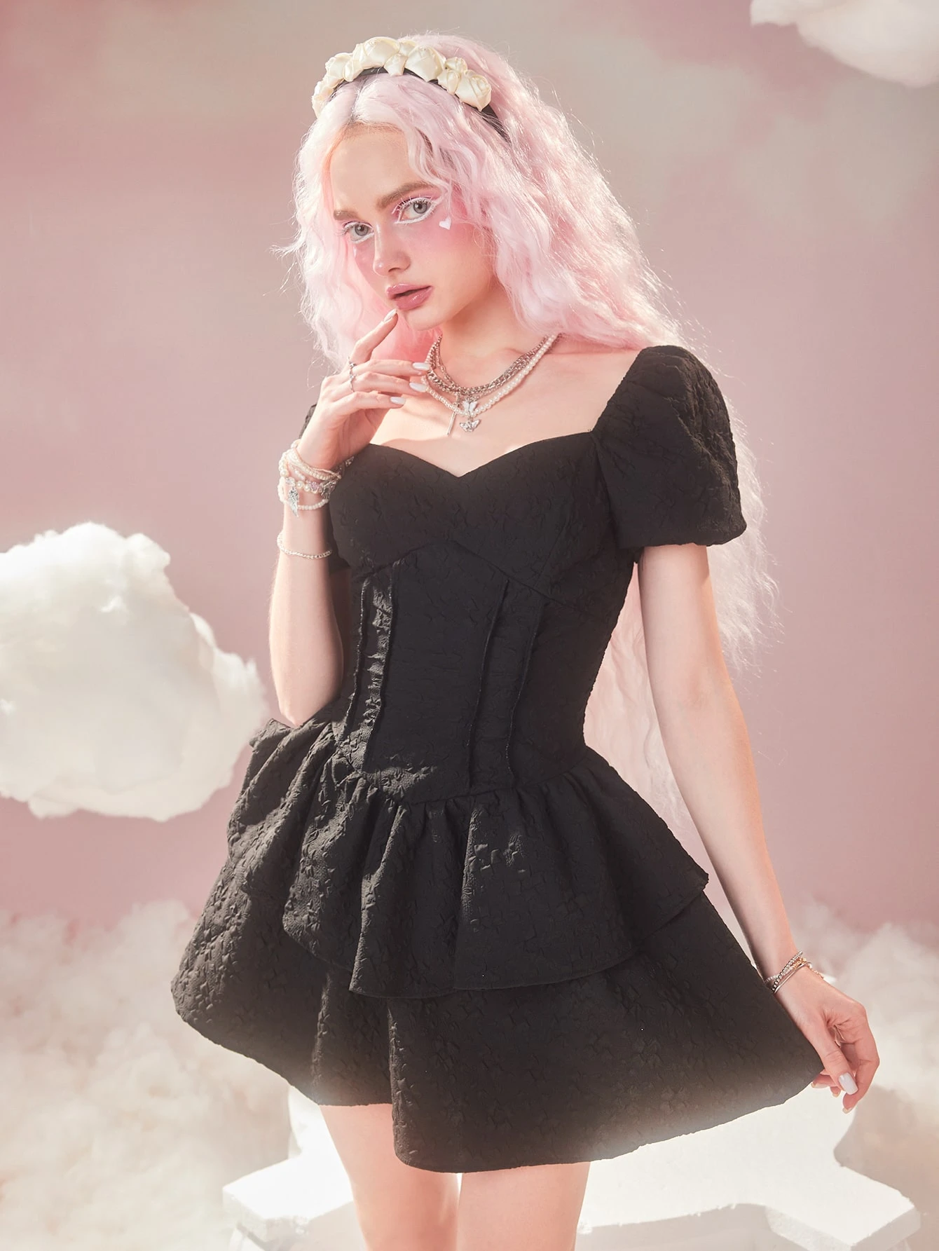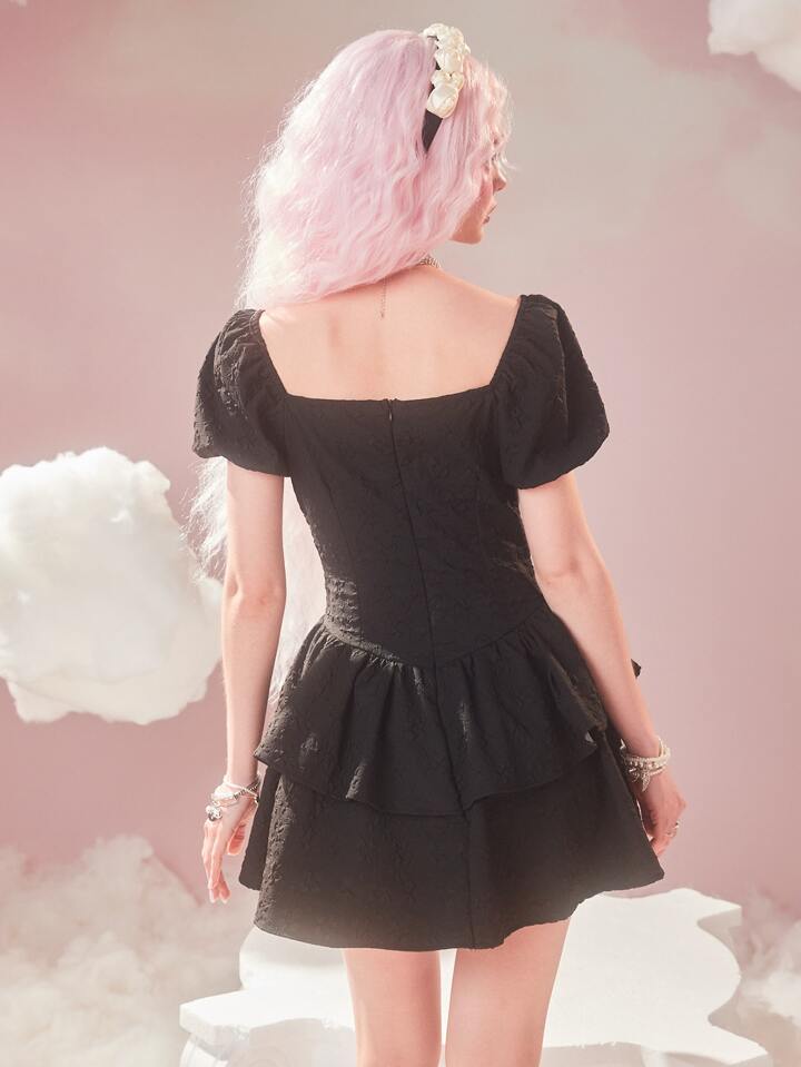 Sweetness Textured Puff Sleeve Ruffle Hem Dress