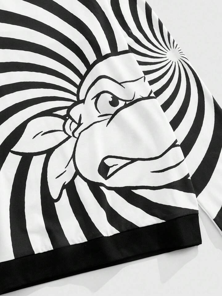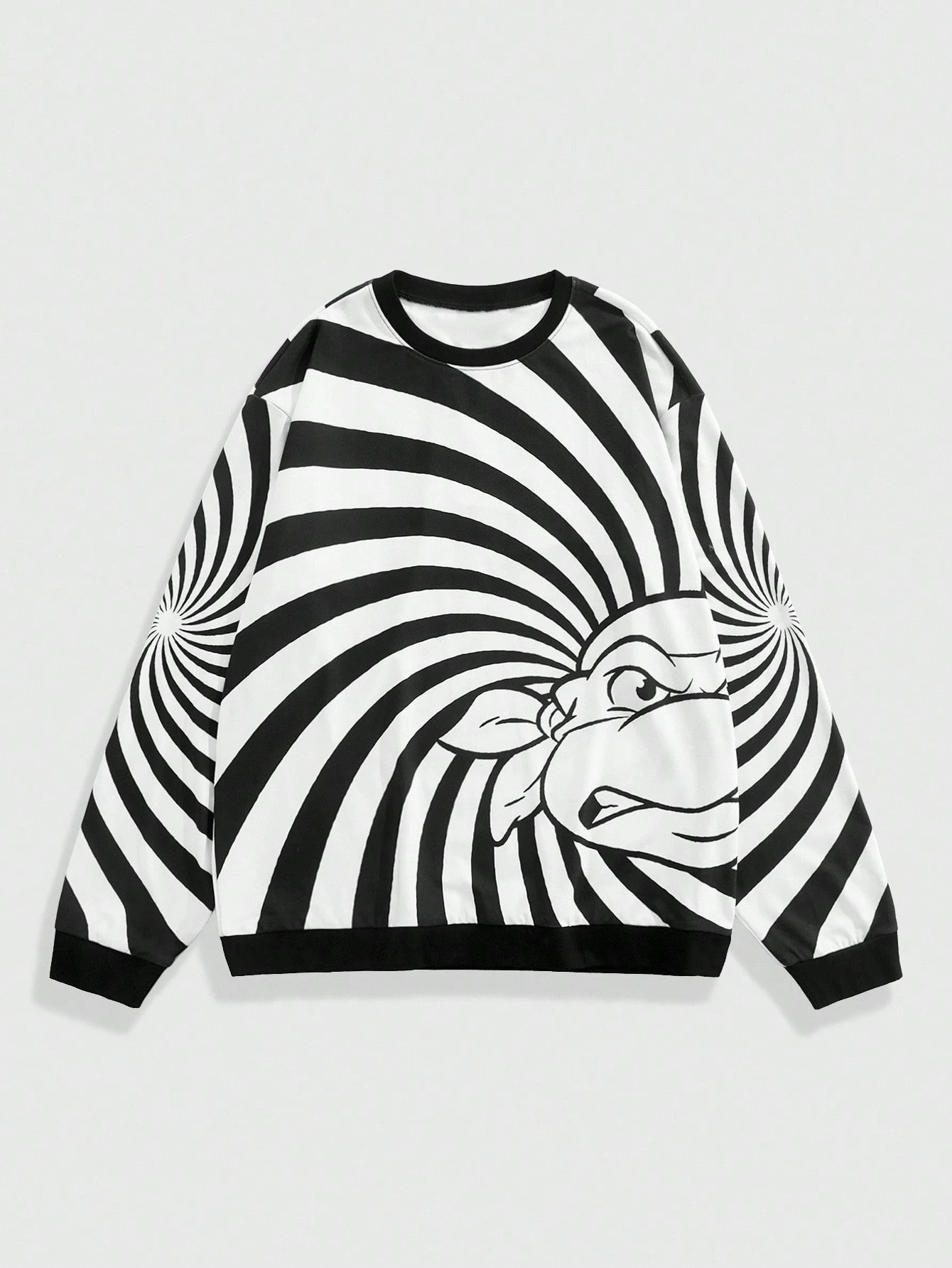 TEENAGE MUTANT NINJA TURTLES X ROMWE Street Life Men's Casual Turtle Print Round Neck Long Sleeve T-Shirt, Autumn