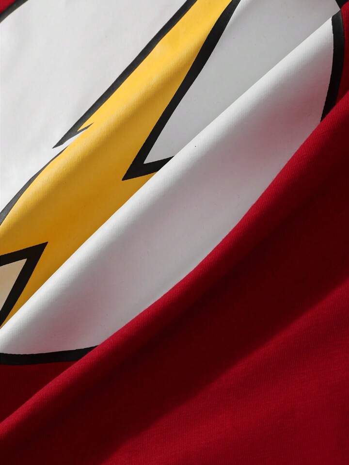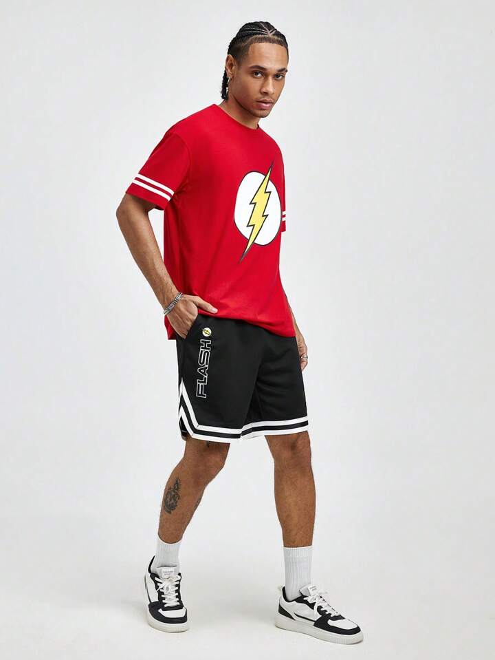 THE FLASH X ROMWE 2pcs Men's Casual Sports Lightning Graphic T-Shirt And Shorts Set, Summer