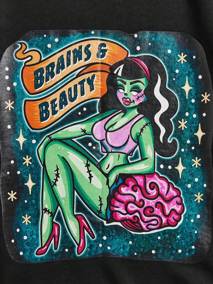 TarrynAnnIllustration Figure & Letter Graphic Drop Shoulder Sweatshirt