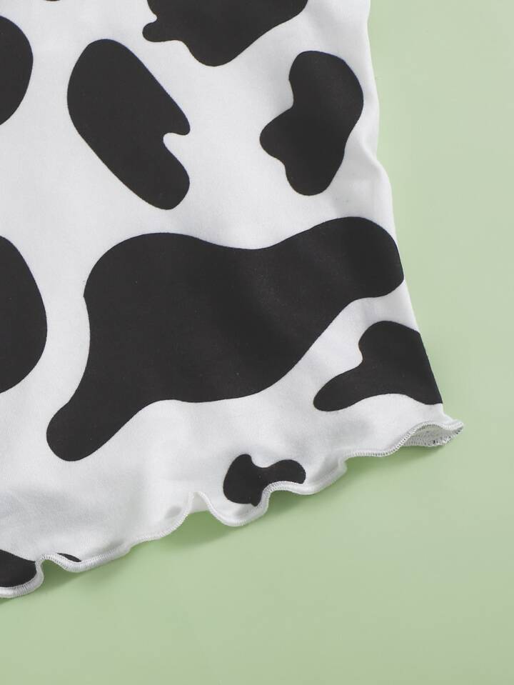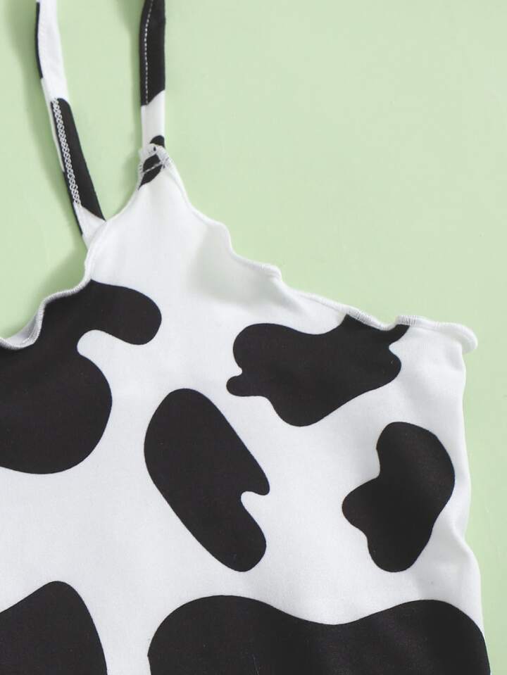 Teen Girls Lettuce Trim Cow Print Crop Cami Top