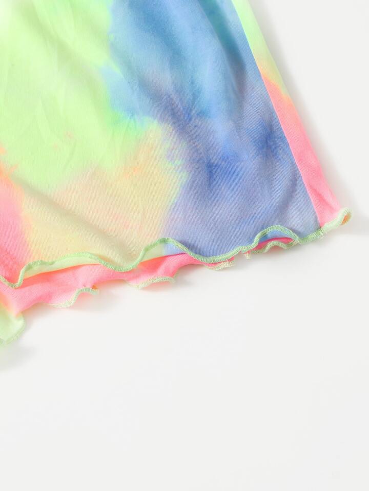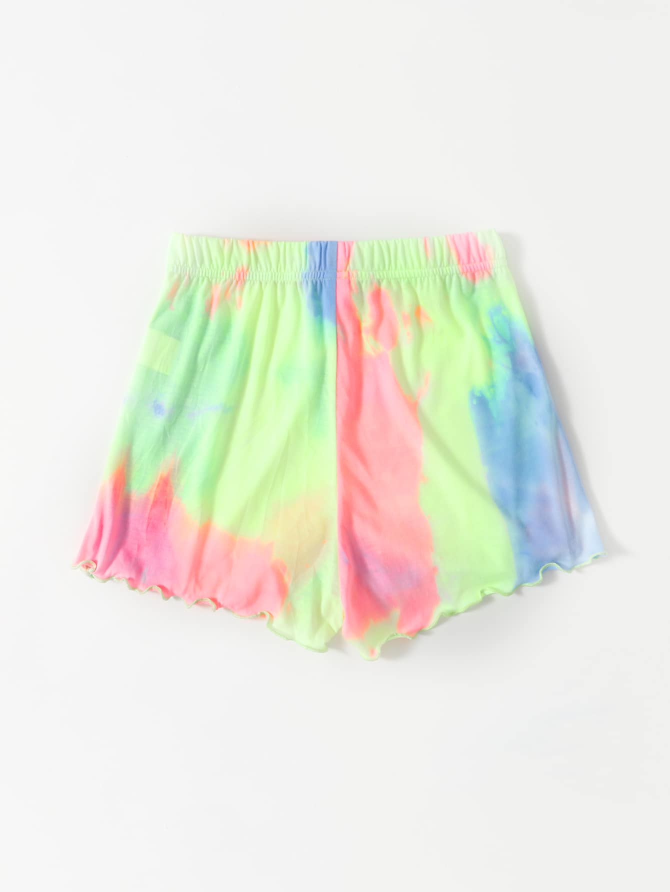 Teen Girls Lettuce Trim Tie Dye Track Shorts