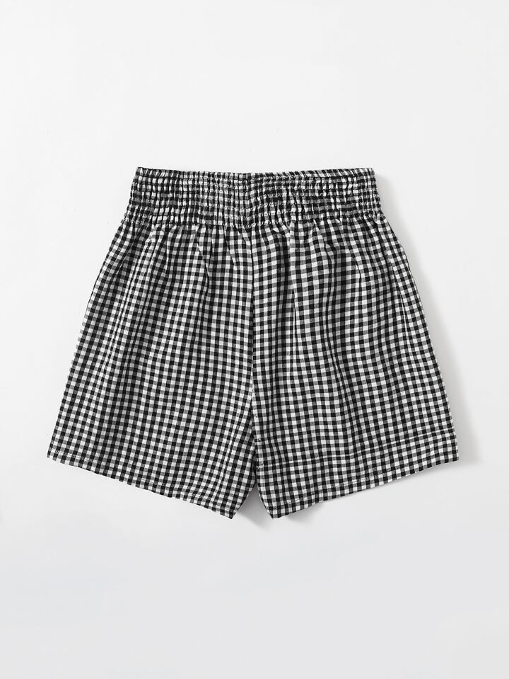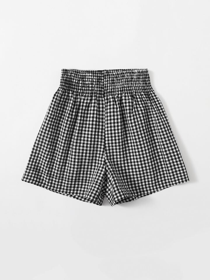 Teen Girls Shirred Waist Gingham Shorts
