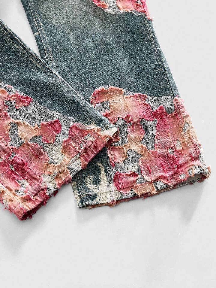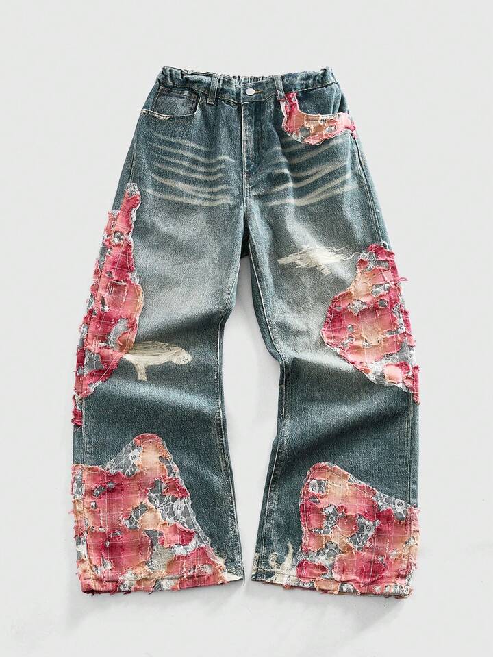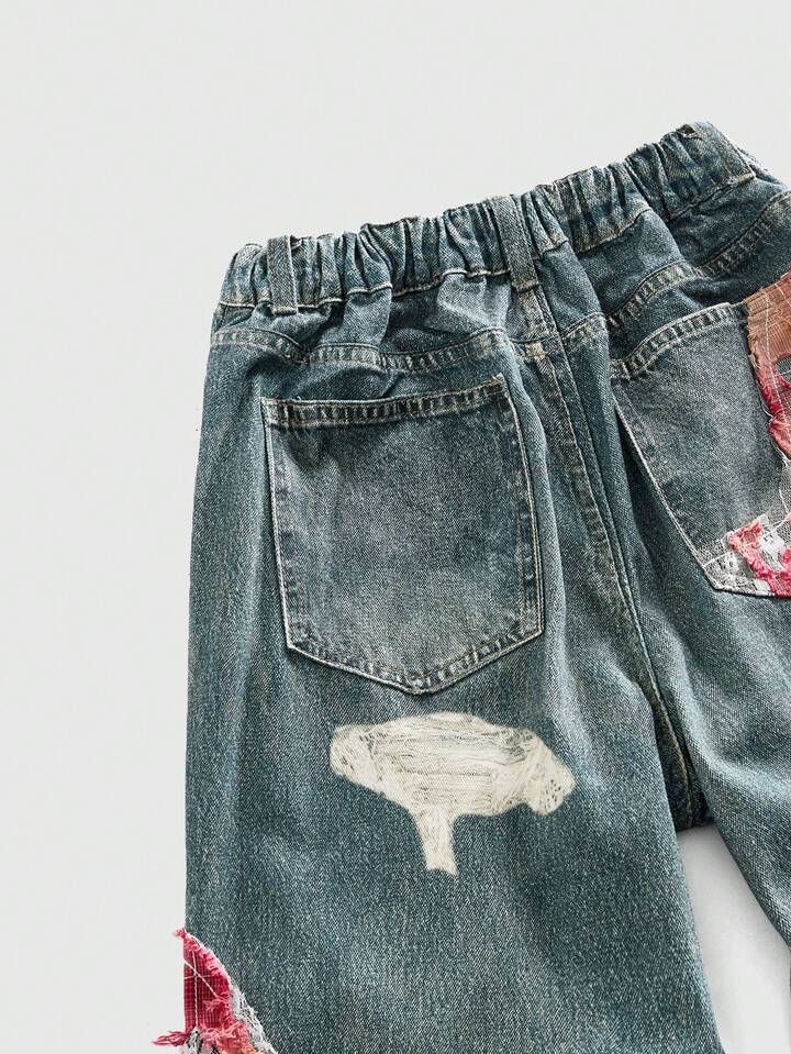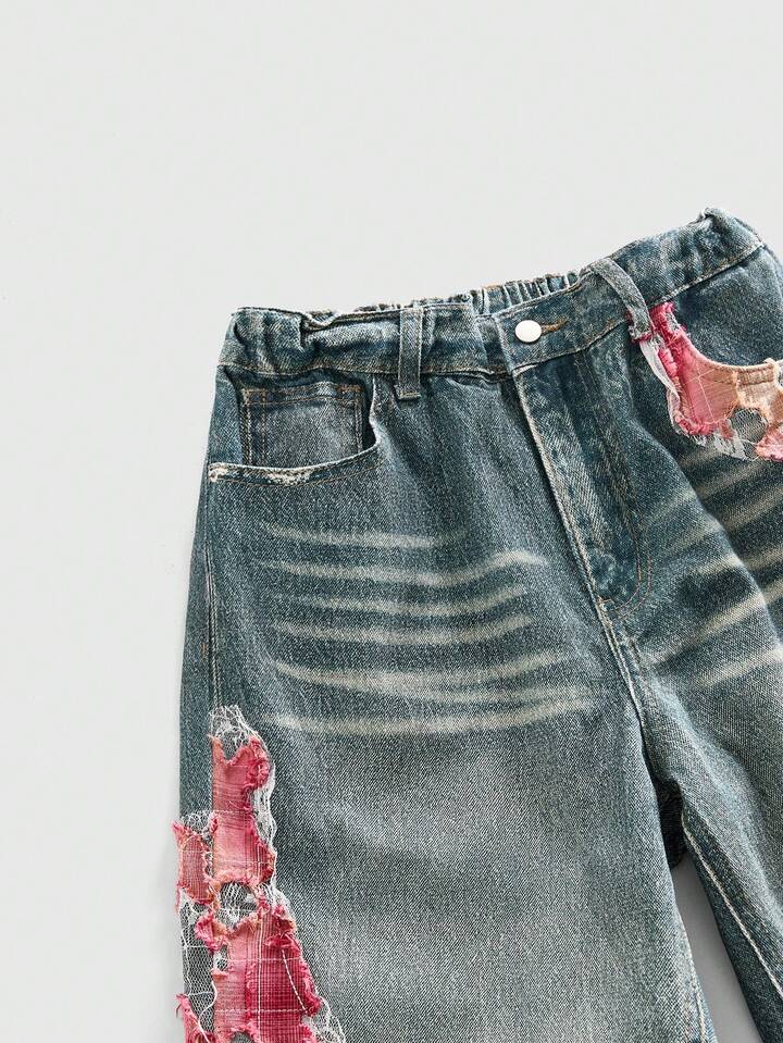 Teenage Boy Casual Loose Fit Pockets Embroidered Wide Leg Jeans