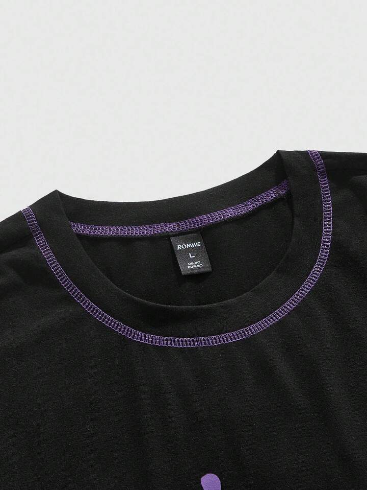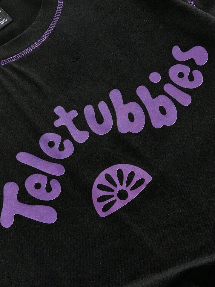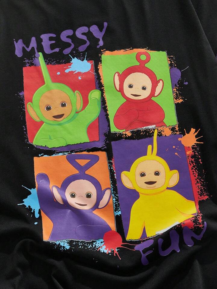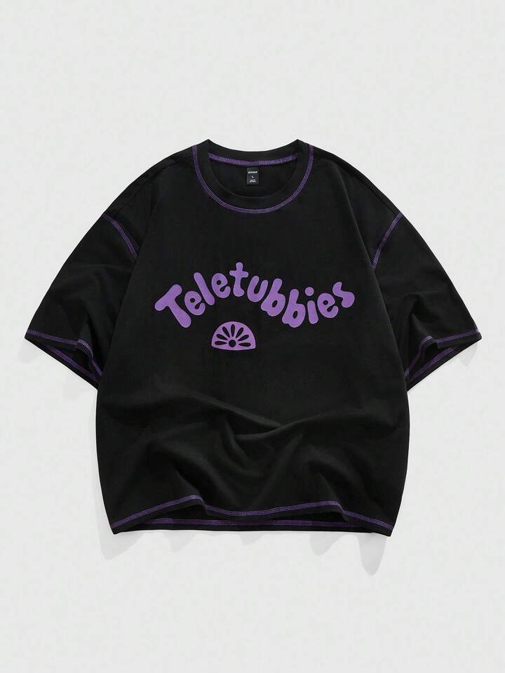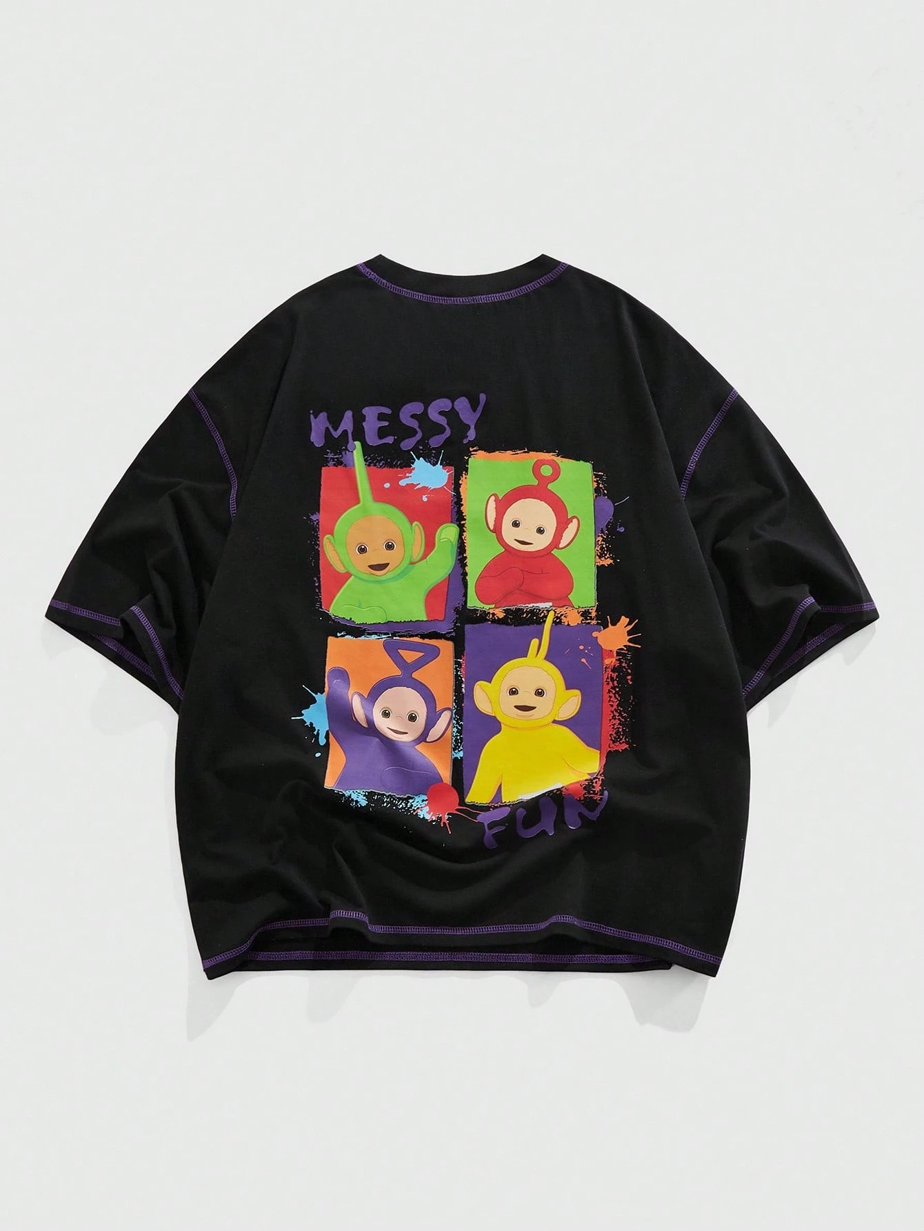 Teletubbies X ROMWE Men's Casual Cartoon & Letter Graphic Short Sleeve T-Shirt, Summer