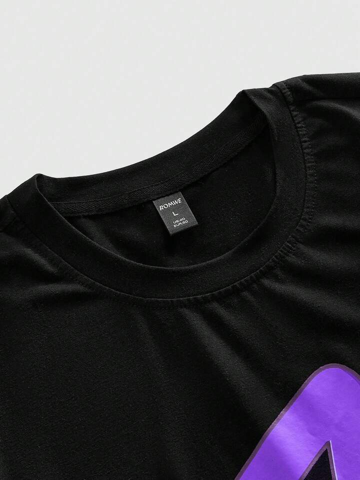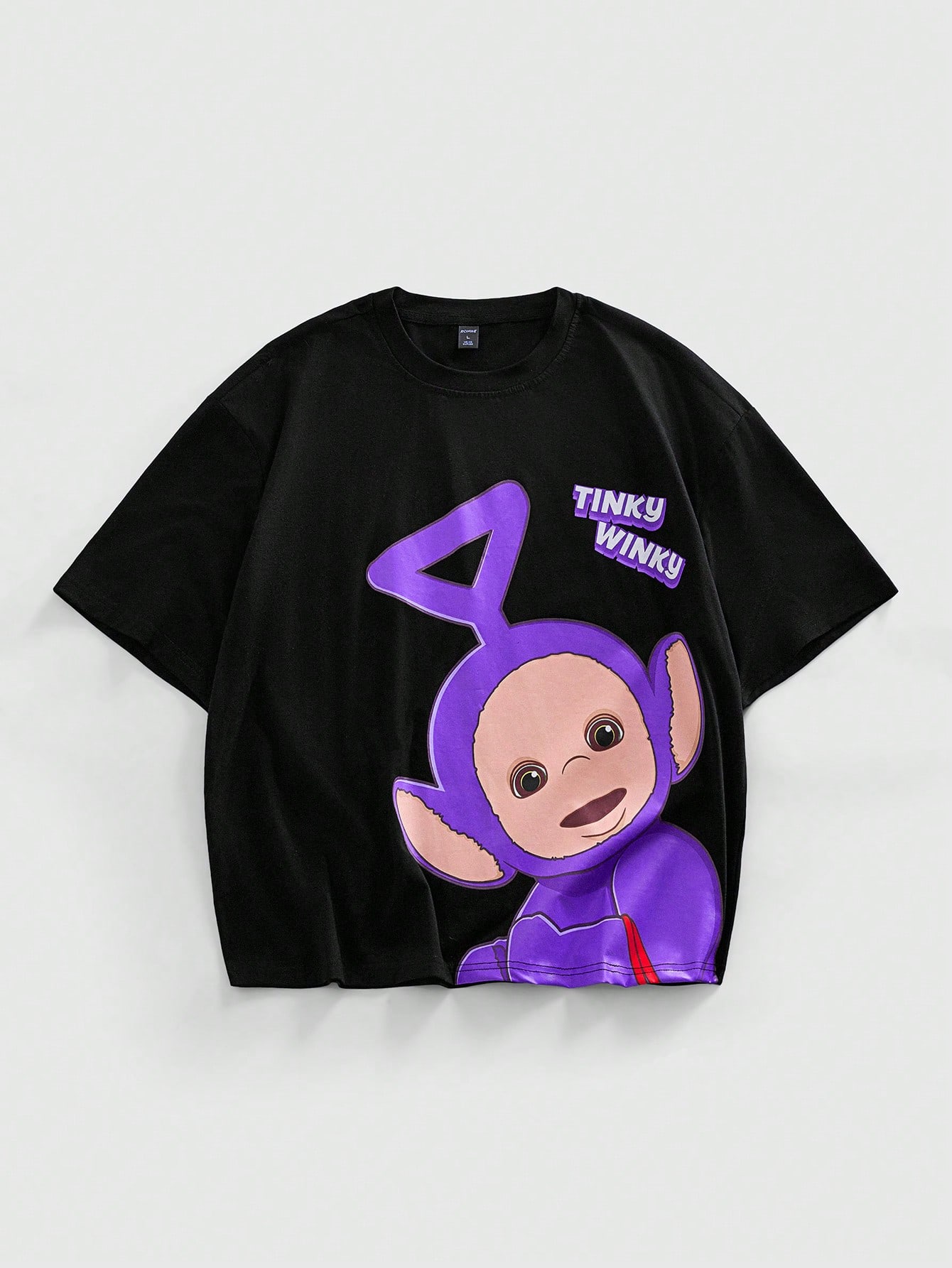 Teletubbies X ROMWE Men's Casual Cute Cartoon Pattern Round Neck Short Sleeve T-Shirt, Summer