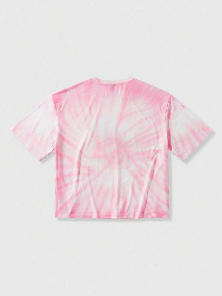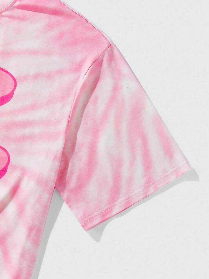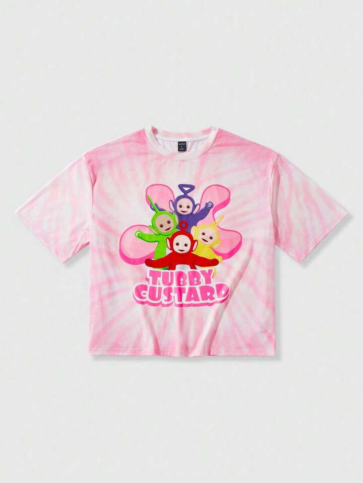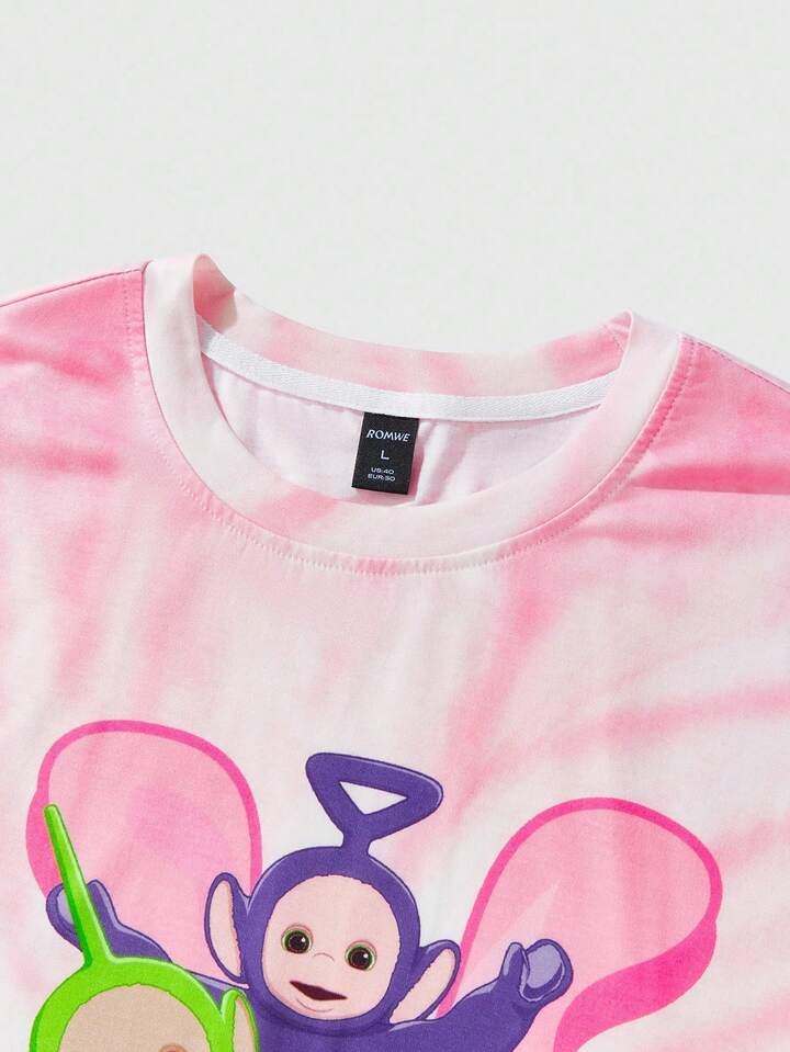 Teletubbies X ROMWE Men's Casual Tie-Dye Cartoon Graphic Round Neck Short Sleeve T-Shirt, Summer