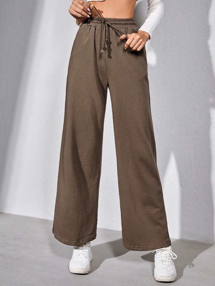 Terry Fleece Drawstring Waist Slant Pocket Palazzo Pants