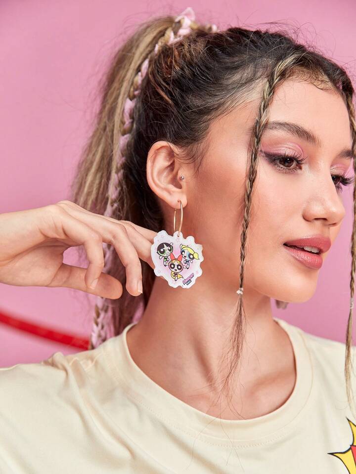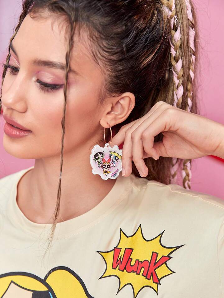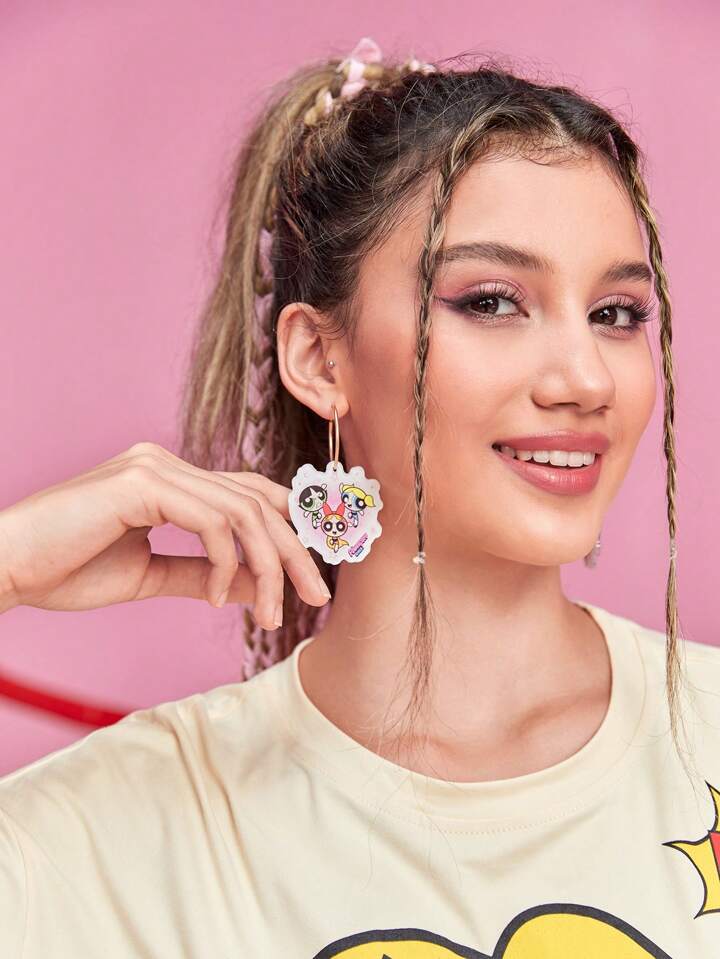 The Powerpuff Girls | ROMWE 1pair Cute Acrylic Cartoon Pattern Drop Earrings For Women For Daily Decoration