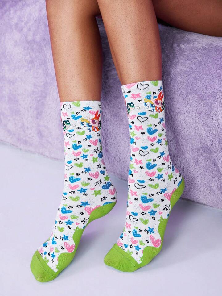 The Powerpuff Girls | ROMWE 1pair Women Cartoon Print Crew Socks