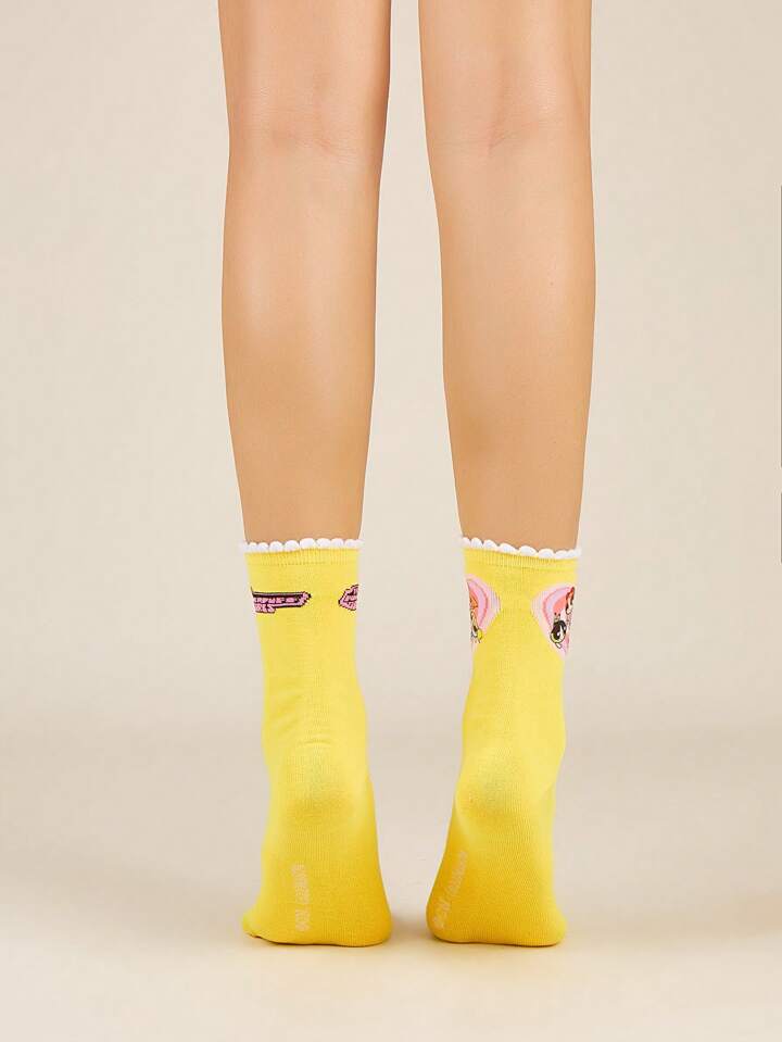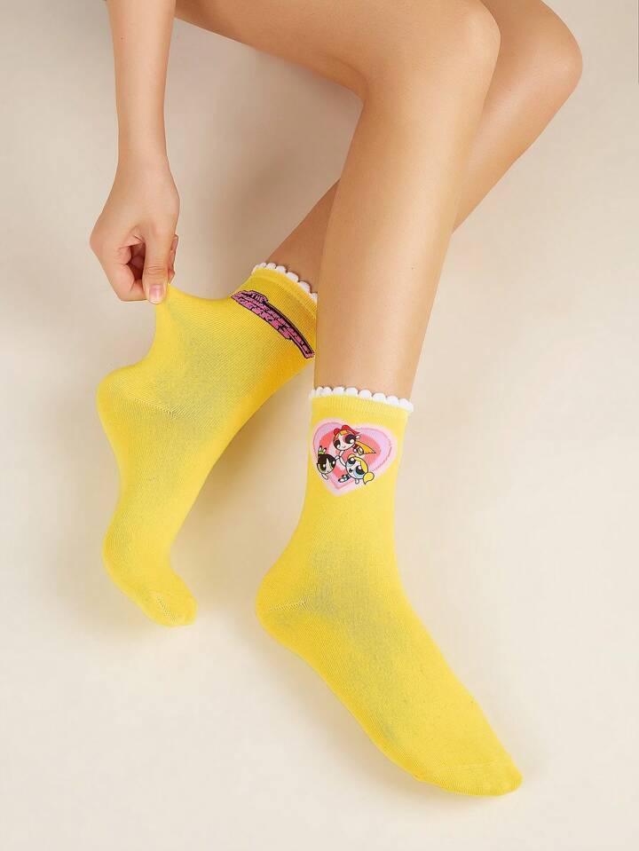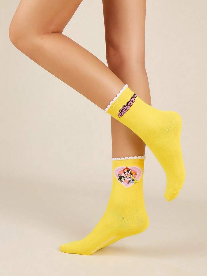 The Powerpuff Girls | ROMWE 1pair Women Letter Cartoon Pattern Fashion Crew Socks