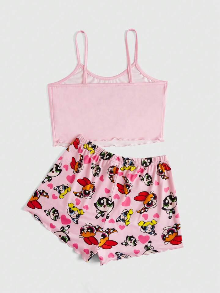 The Powerpuff Girls | ROMWE Blossom, Bubbles, Buttercup Print Cami Top And Shorts Pajama Set, Summer Casual
