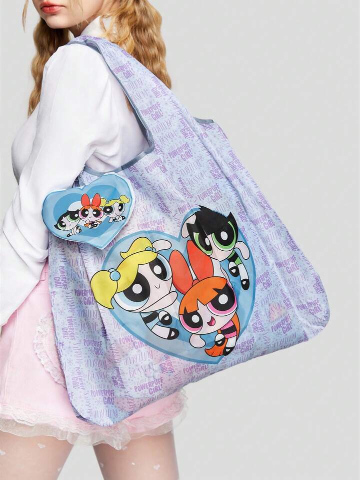 The Powerpuff Girls | ROMWE Cartoon Graphic Large Capacity Foldable Tote Bag For Shopping And Storage
