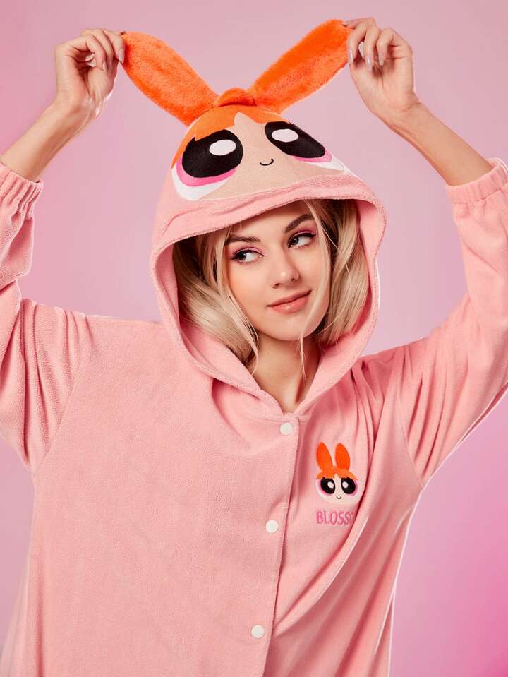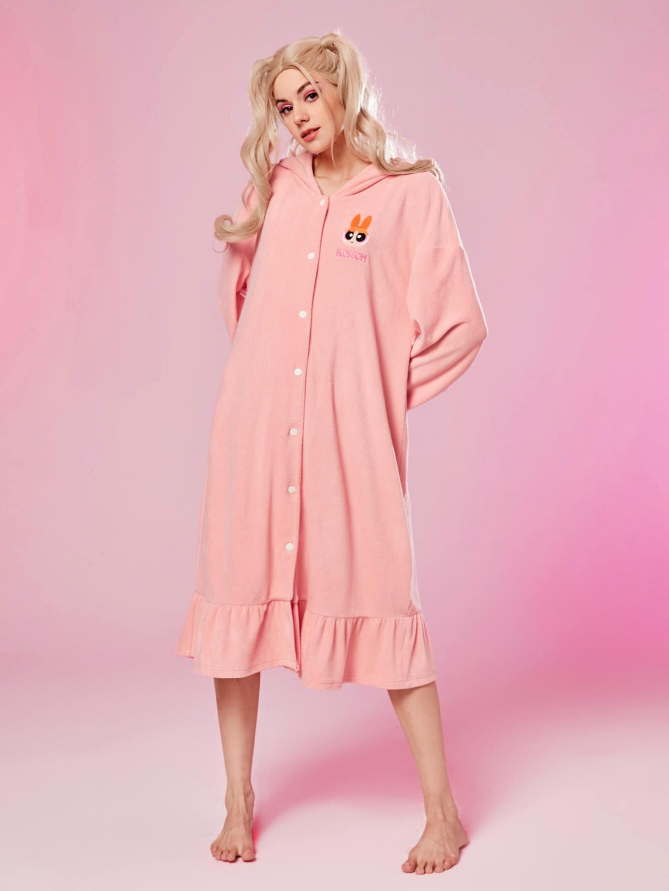 The Powerpuff Girls | ROMWE Cartoon Graphic Ruffle Hem Hooded Night Dress