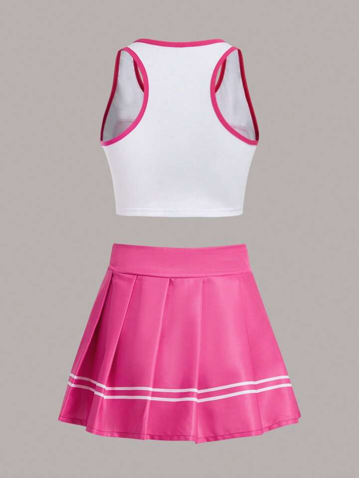The Powerpuff Girls | ROMWE Letter Graphic Contrast Binding Cheerleader Costume Set