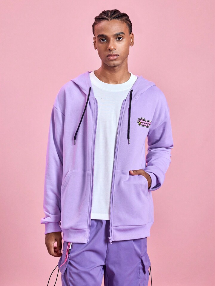 The Powerpuff Girls | ROMWE Men's Casual Cartoon & Letter Printed Long Sleeve Drawstring Hooded Zipper Sweatshirt, School