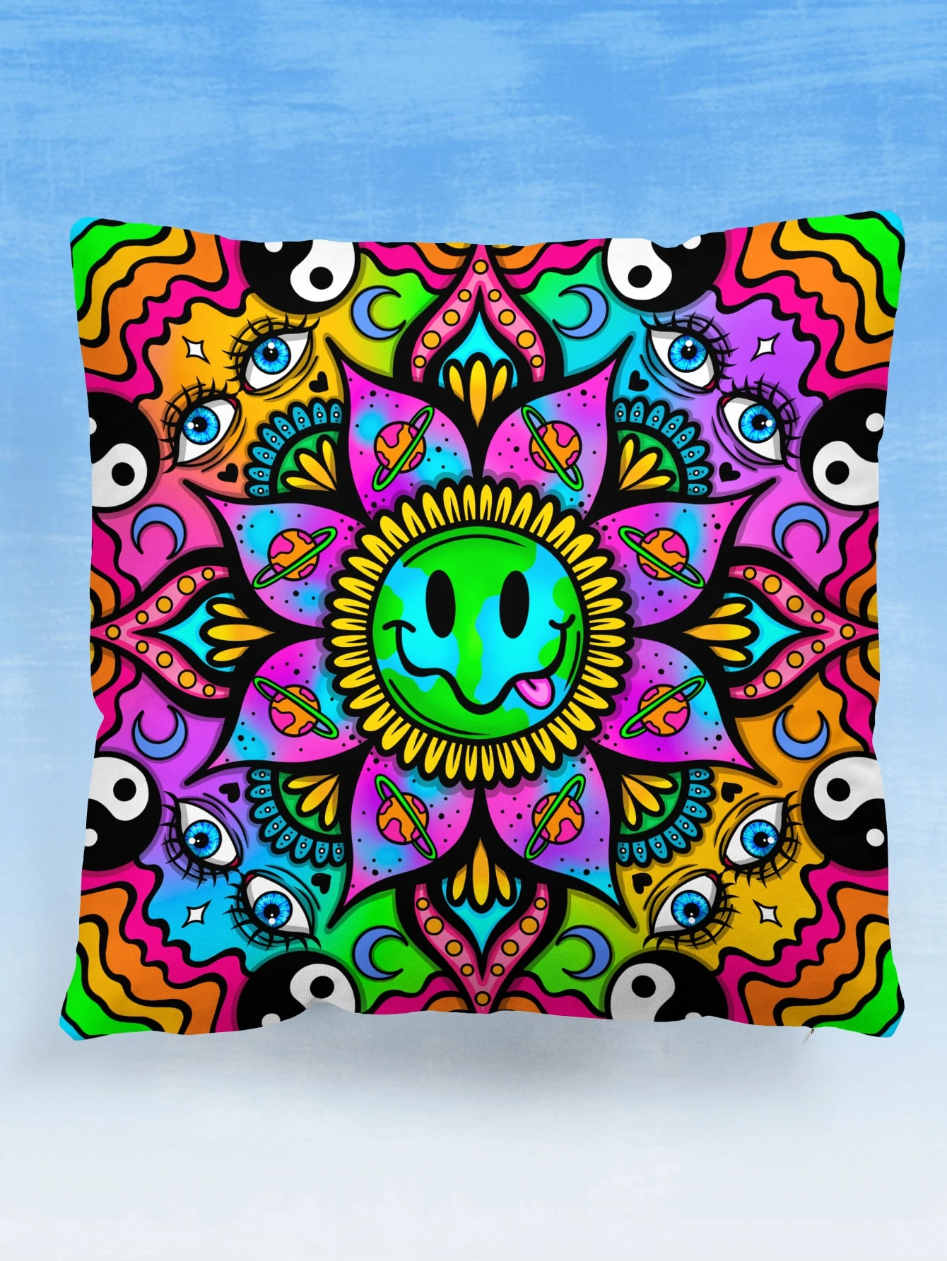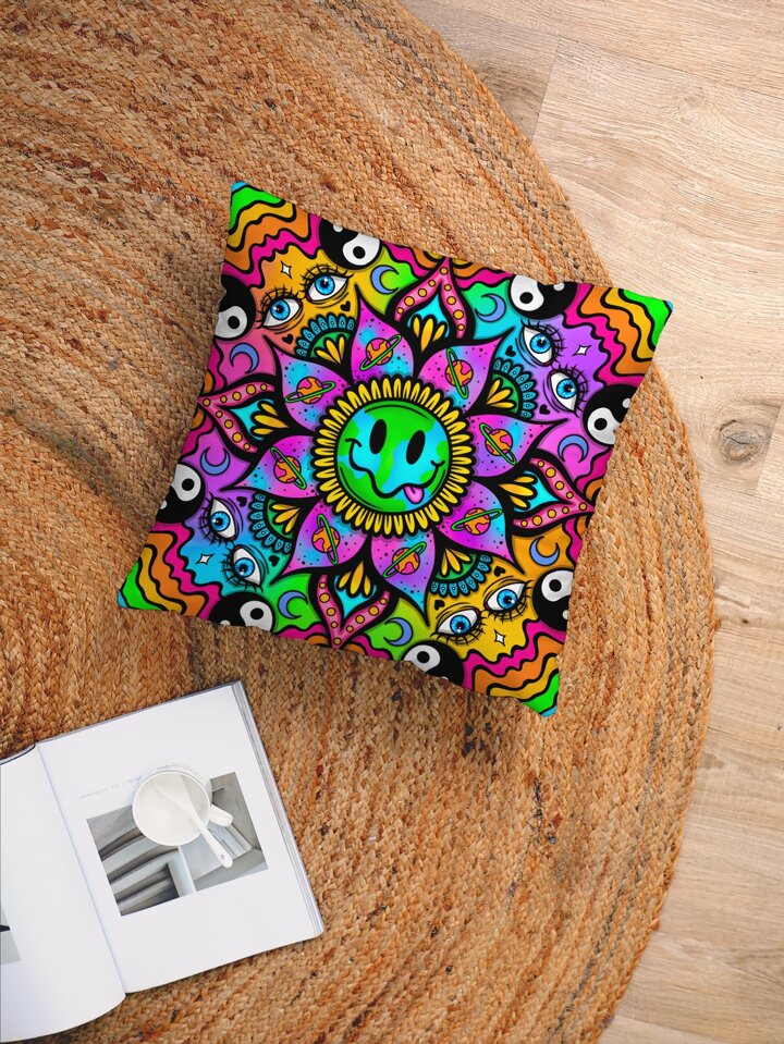 ThisUniqueVibe Abstract Flower & Eye Print Cushion Cover Without Filler