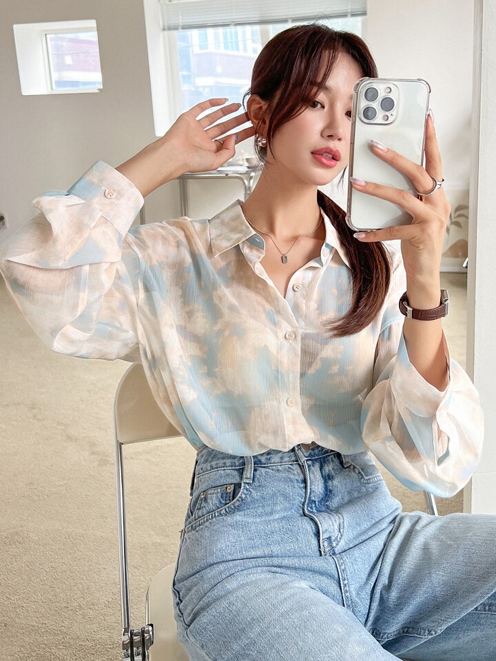Tie Dye Drop Shoulder Shirt,Fall Clothes Long Sleeve Top Graphic Tee