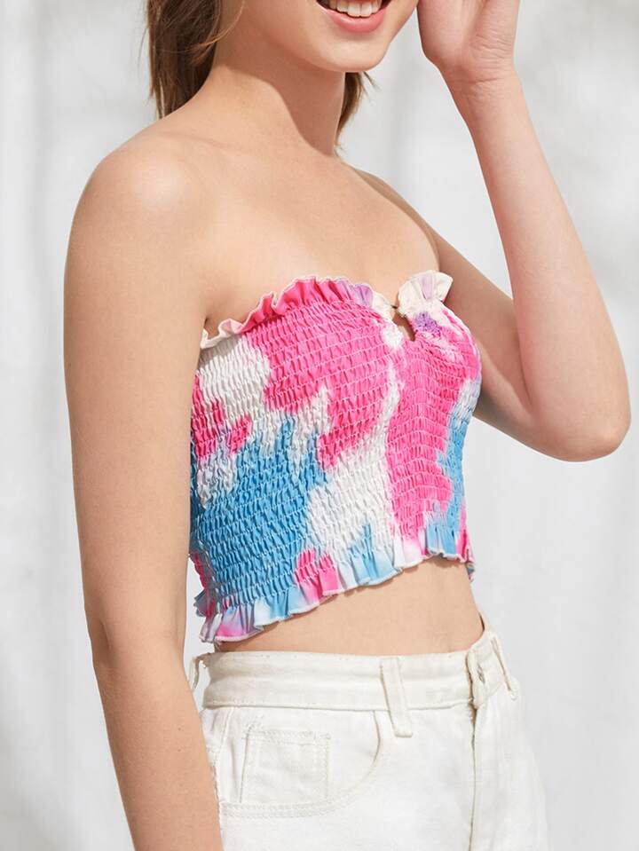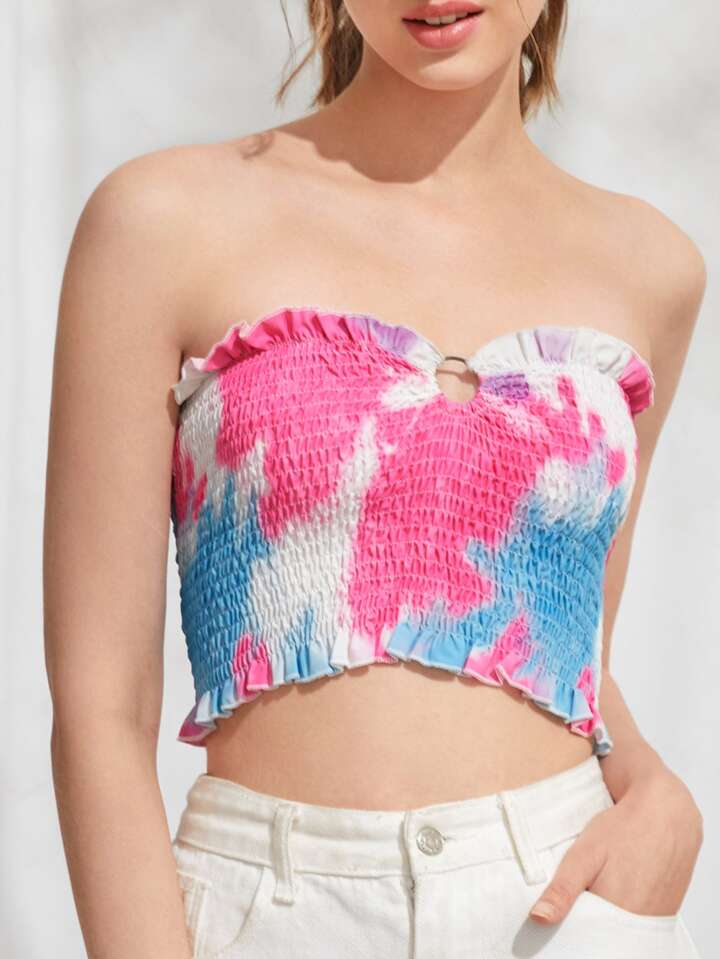 Tie Dye Shirred Ring Decor Tube Top