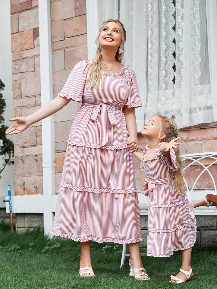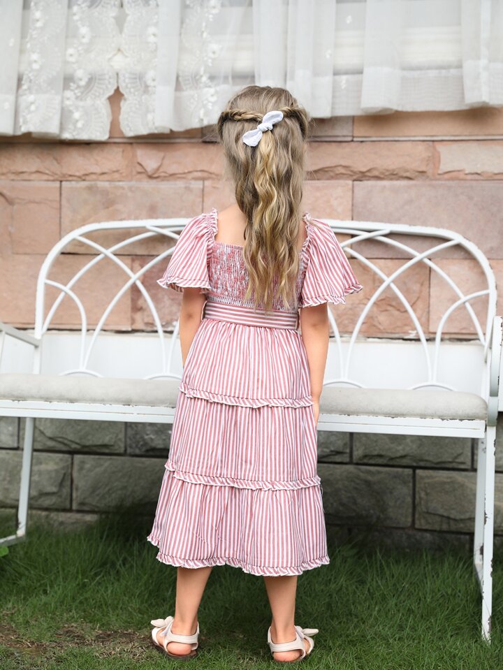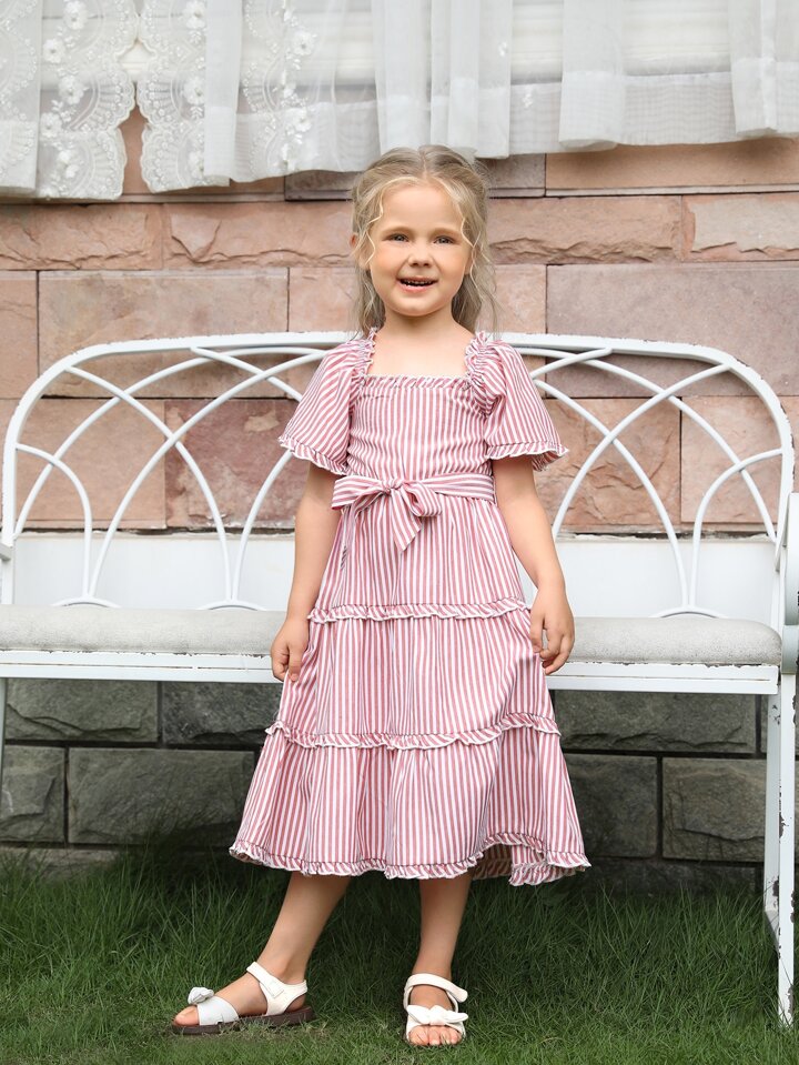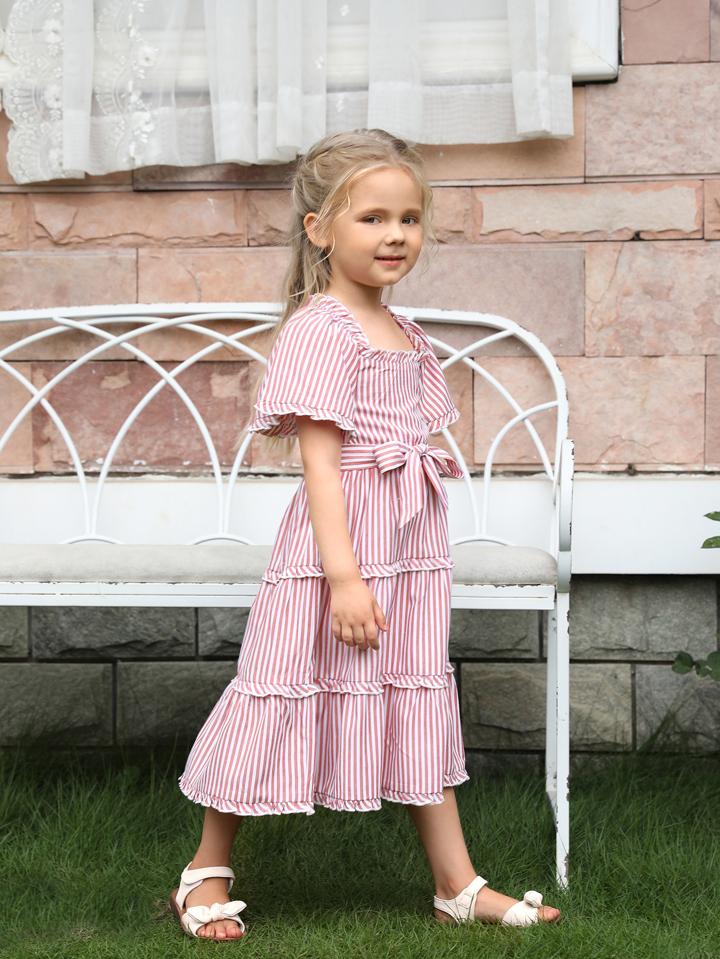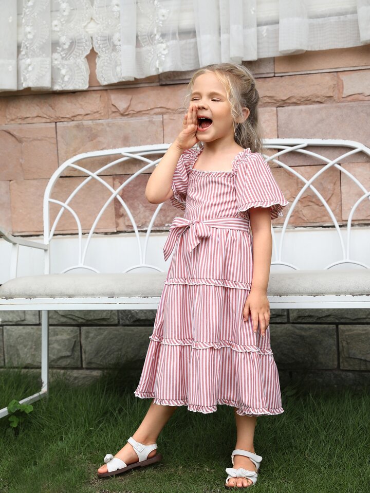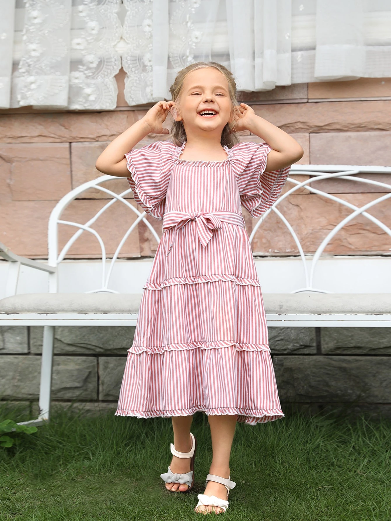 Toddler Girls 1 PC Butterfly Sleeve Self Belted Striped Dress