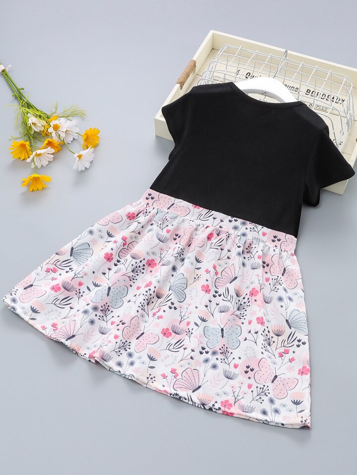 Toddler Girls Butterfly Print Bow Front Combo Dress