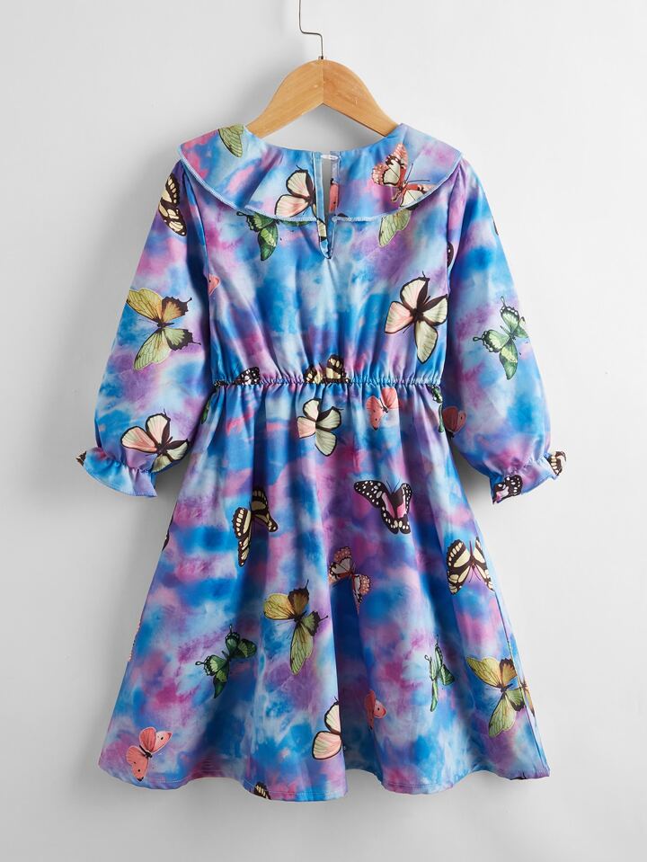 Toddler Girls Butterfly & Tie Dye Print Ruffle Dress