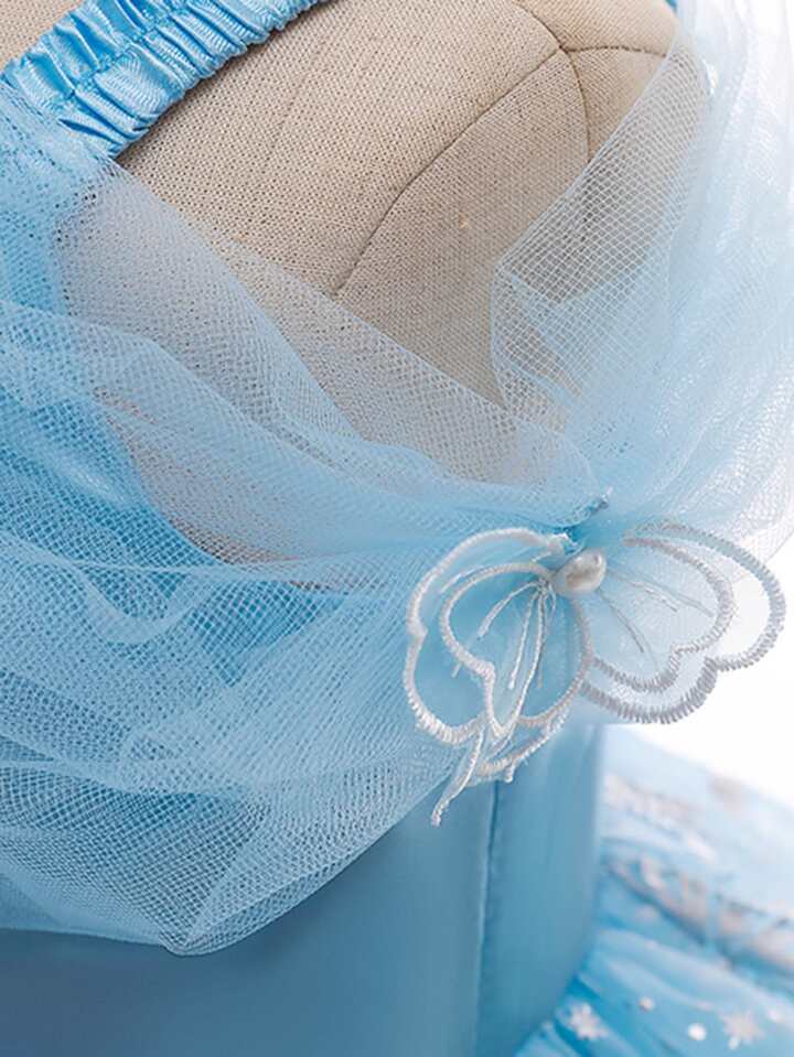 Toddler Girls Contrast Mesh Hem Appliques Party Dress