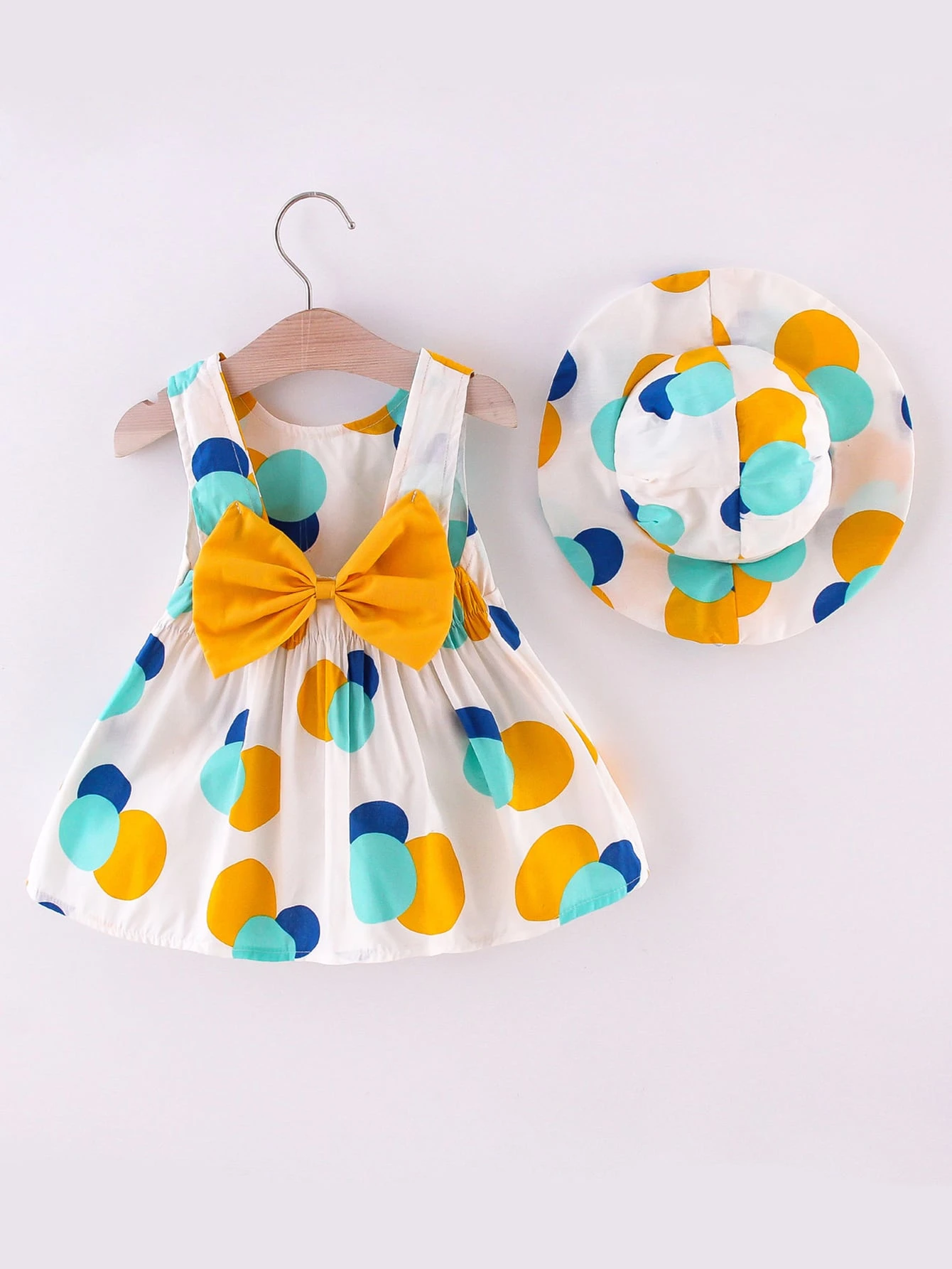 Toddler Girls Polka Dot Bow Back Dress With Hat
