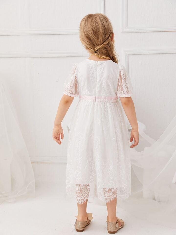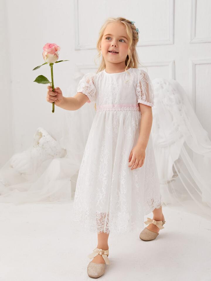 Toddler Girls Puff Sleeve Sheer Lace Dress